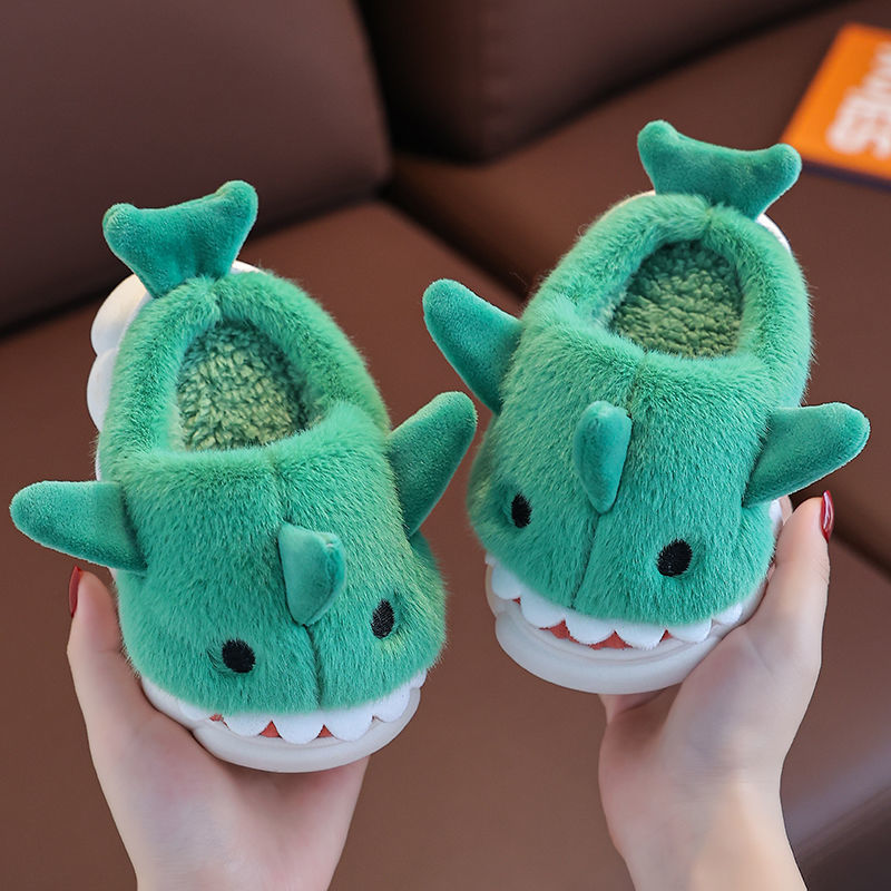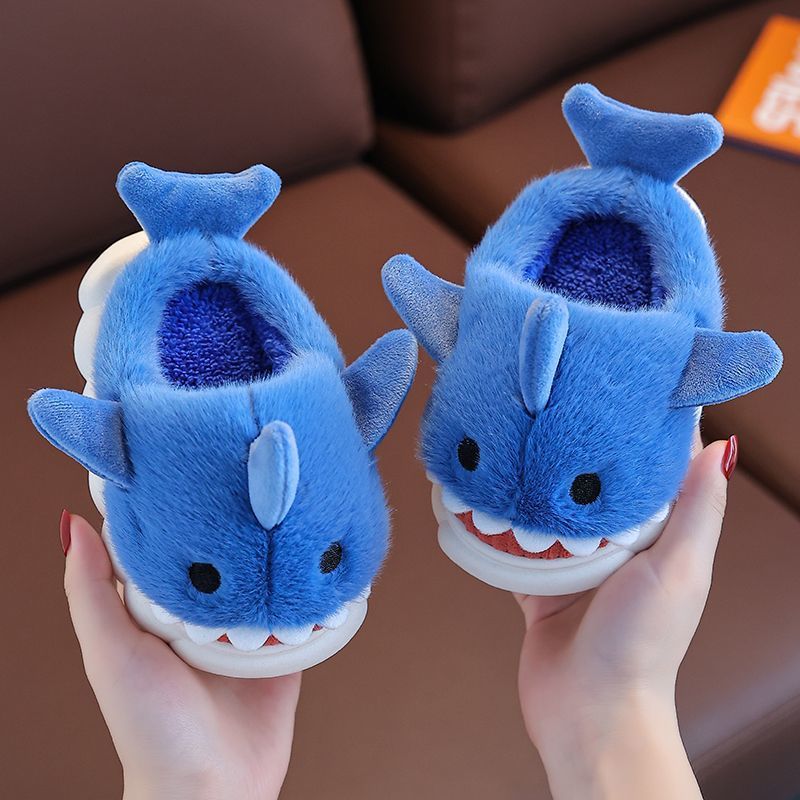 어린이 면화 슬리퍼 만화 상어면 신발 소년과 소녀 아기 실내 미끄럼 방지 따뜻한 부드러운 바닥 겨울 면화 슬리퍼를 추가스토어 가기