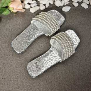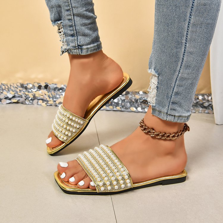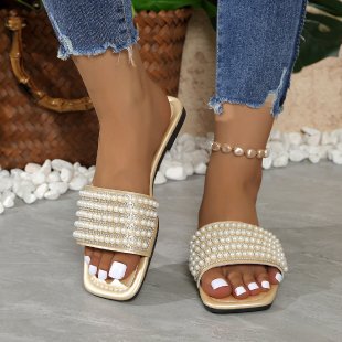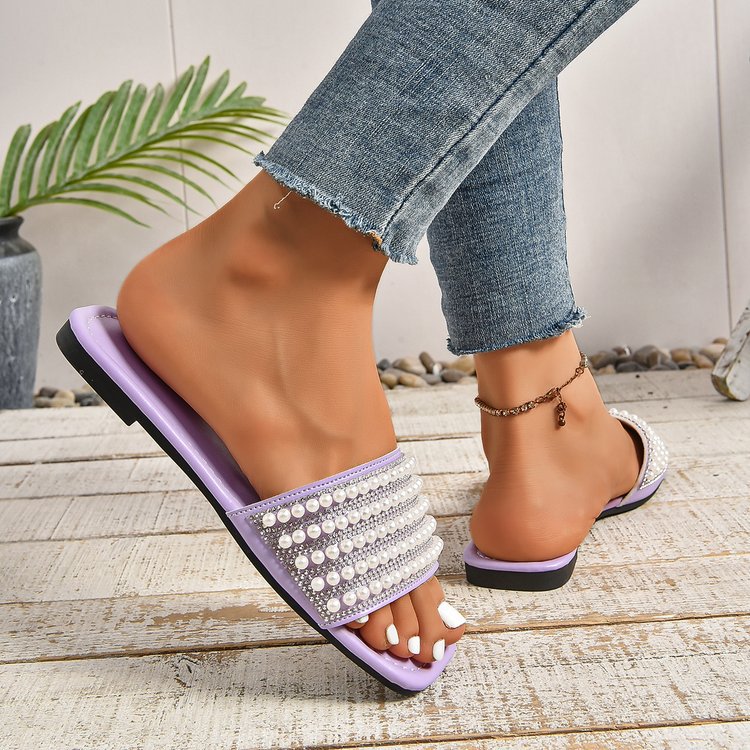 스퀘어 헤드 플랫 슬리퍼 2025 봄 새로운 여성 의상 캐주얼 비치 플러스 사이즈 샌들스토어 가기