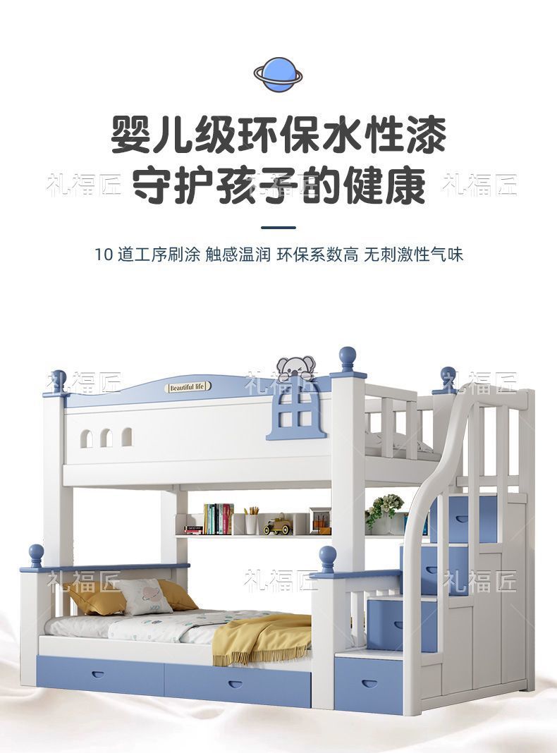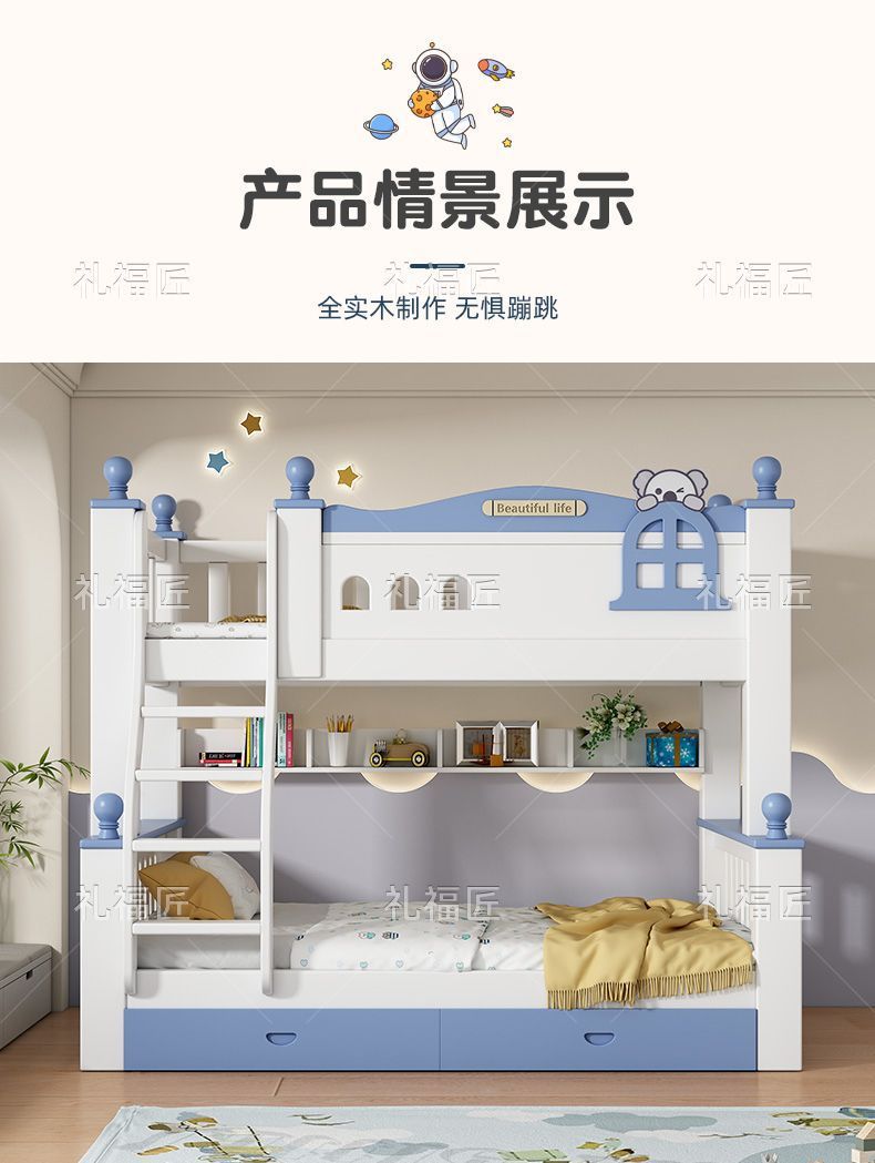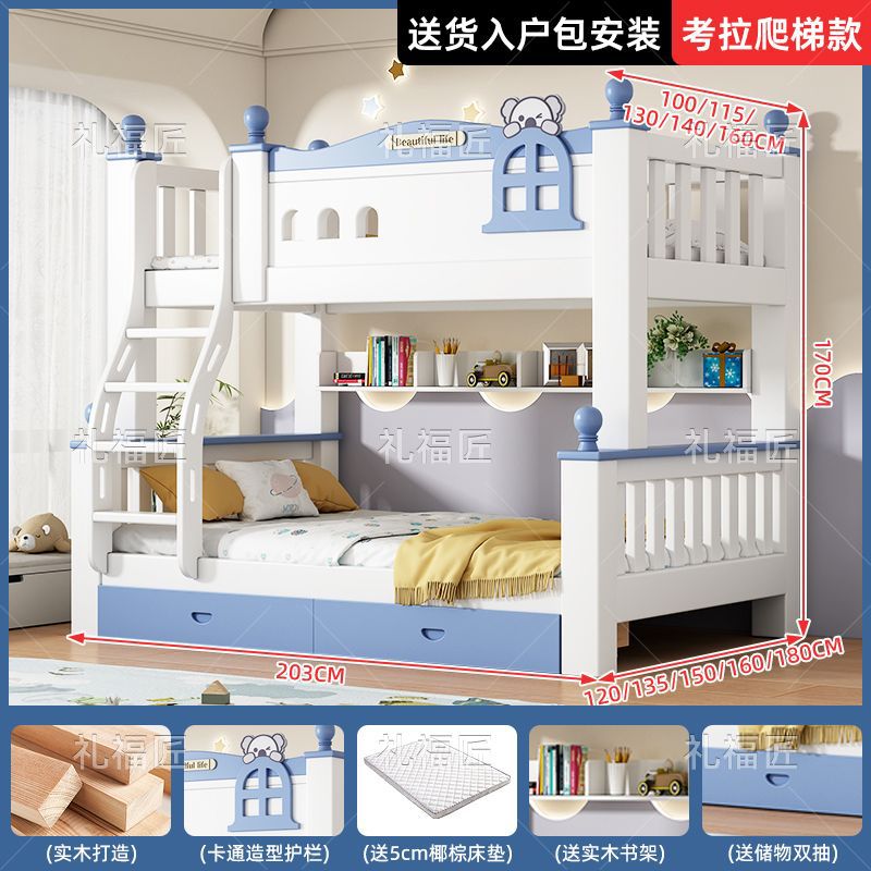 체리 우드 볼드 침대 어린이 이층 침대 어머니 침대 2 층 작은 아파트 침대 높고 낮은 어린이 침대스토어 가기