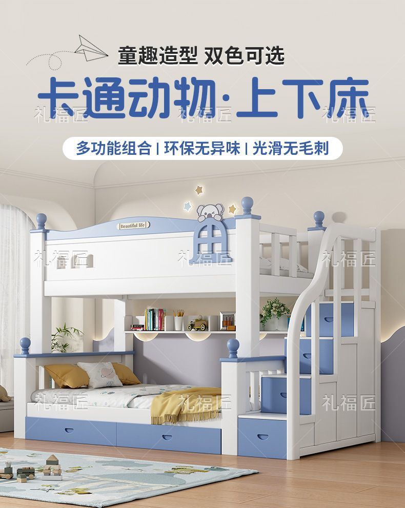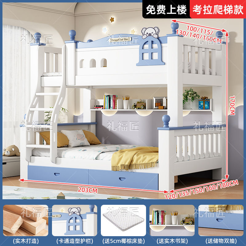 • 파란색과 흰색 코알라 이중 사다리 + 5cm 갈색 매트 + 책장 + 서랍 가방 설치