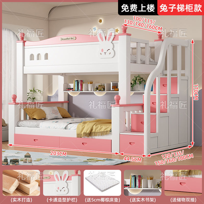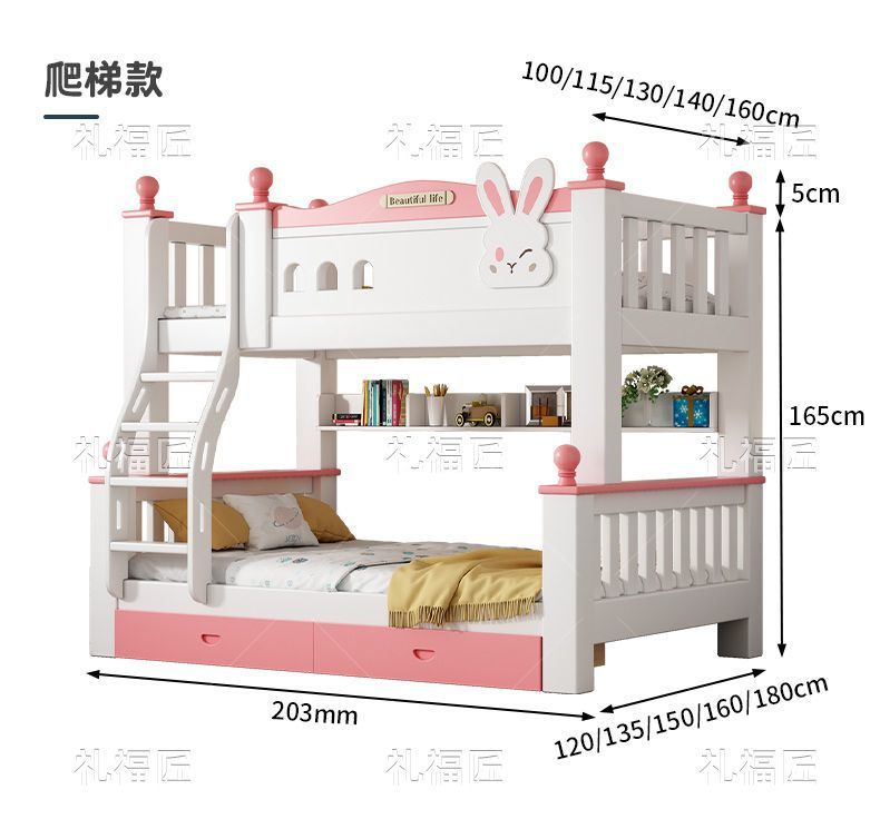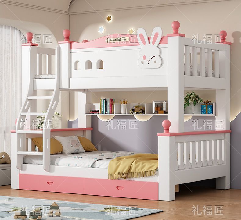 • 분홍색과 흰색 긴귀토끼 사다리 + 5cm 갈색 매트 + 책장 + 서랍 가방 위층