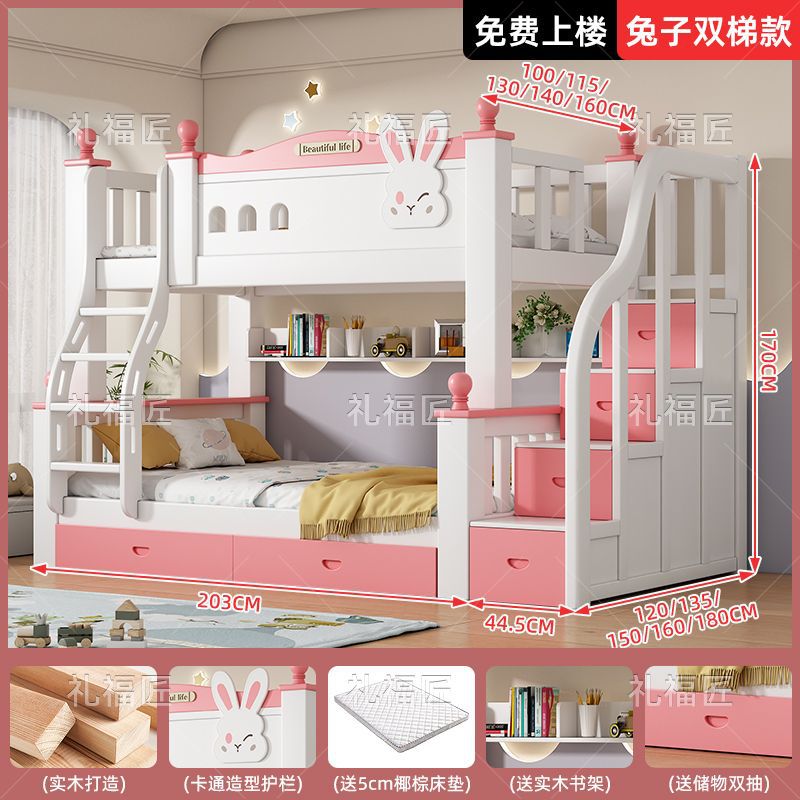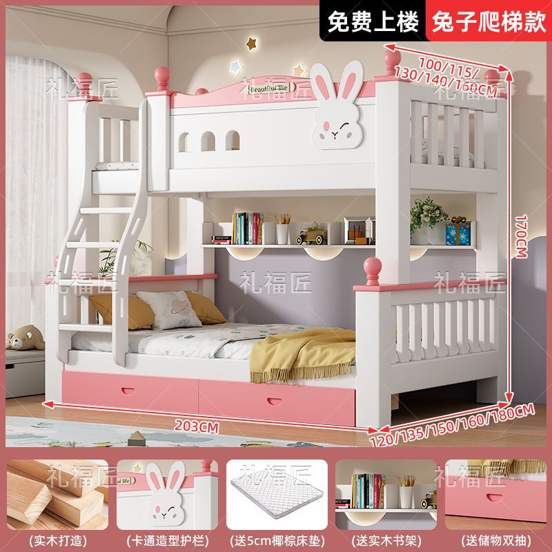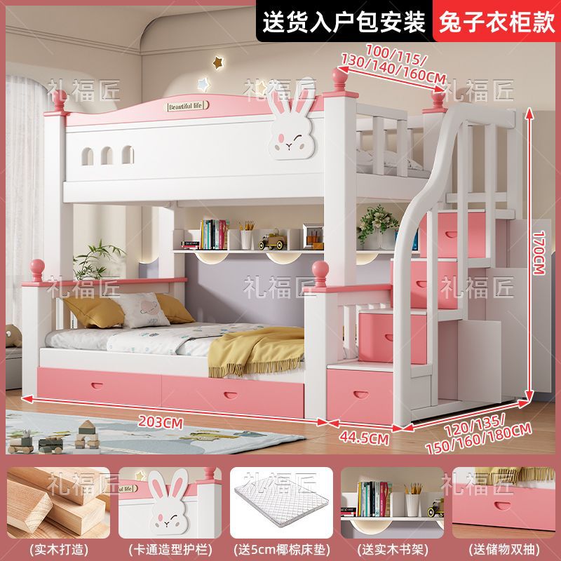 • 분홍색과 흰색 긴 귀 토끼 사다리 캐비닛 + 5cm 갈색 매트 + 책장 + 서랍 가방 위층으로 가세요