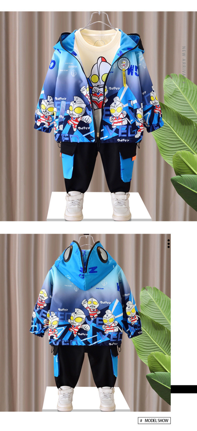 2024 년 봄과 가을 세트 소년을위한 울트라 맨 옷 새 소년 아기 봄 투피스 아이들의 잘 생긴 패션스토어 가기