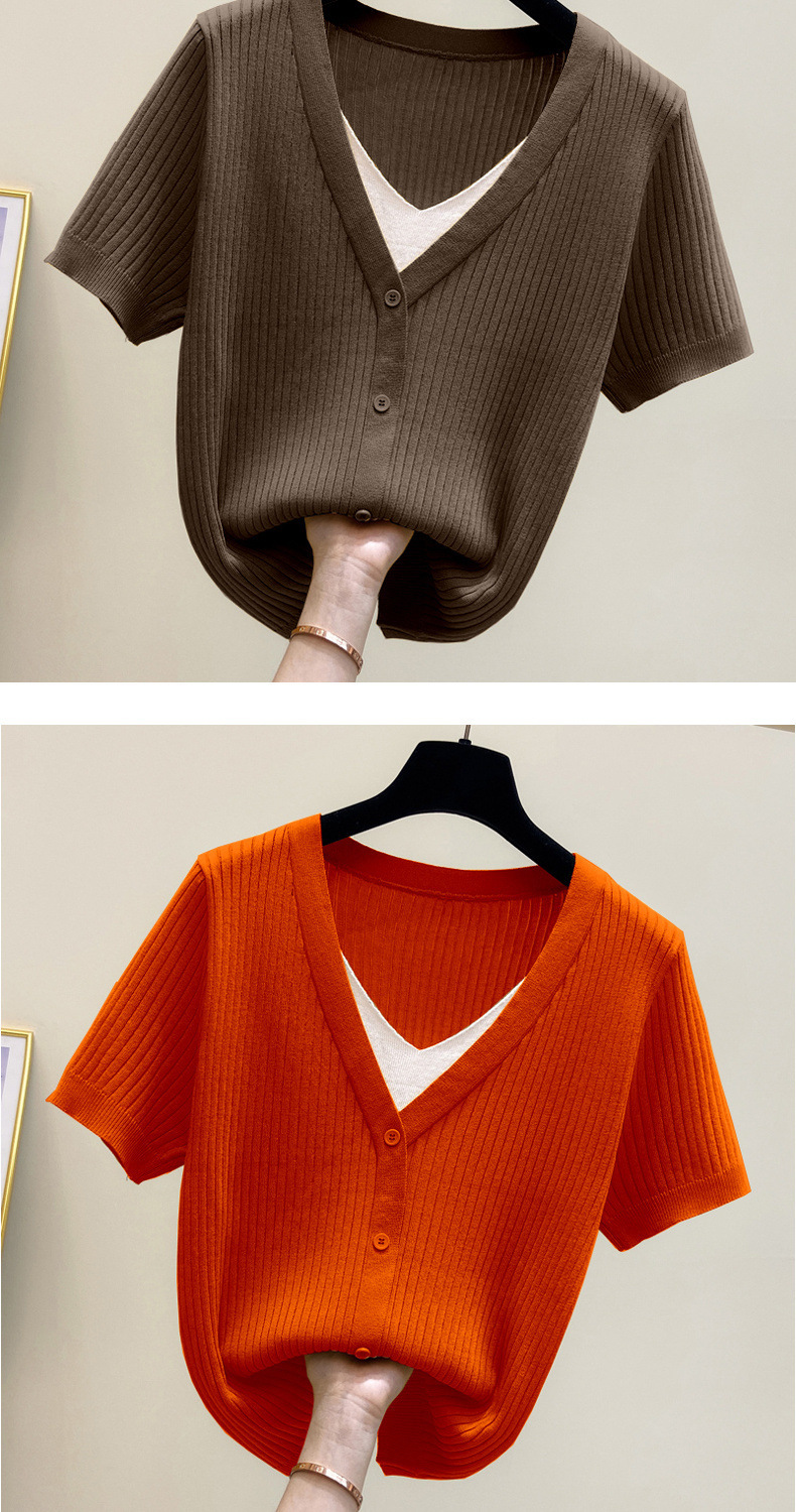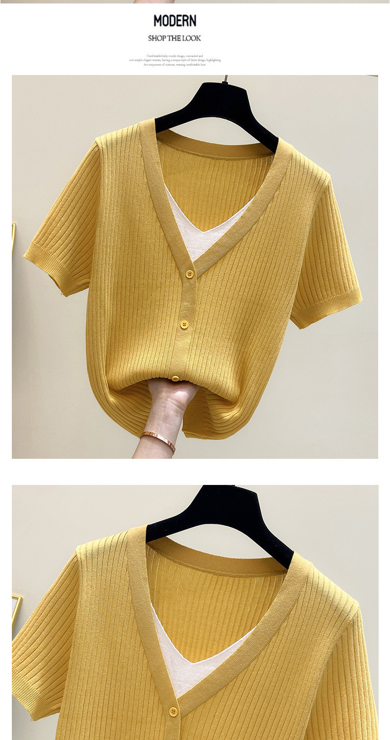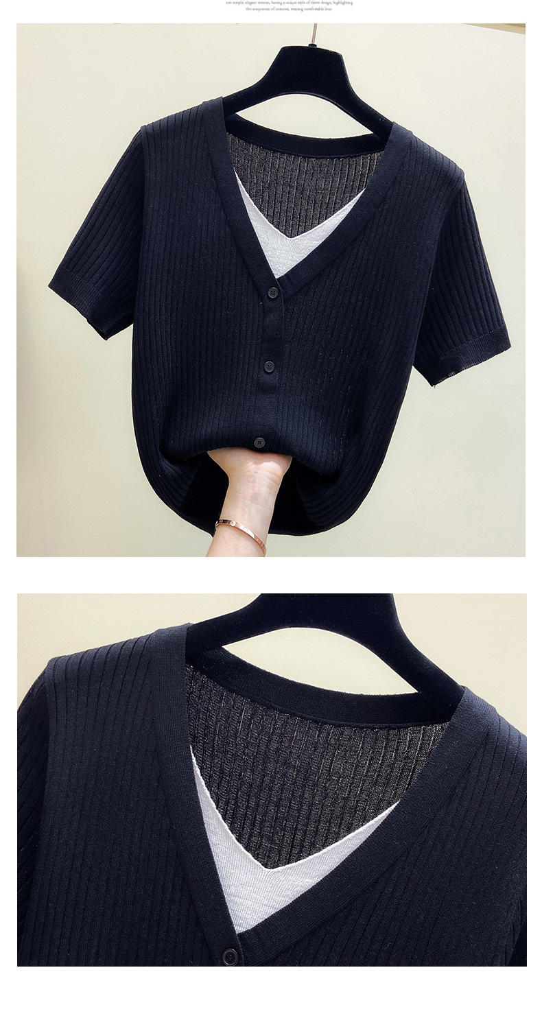 아이스 실크 칼라 가짜 투피스 반팔 셔츠 탑 여자 여름 새로운 올매치 느슨한 슬리밍 니트베이스 셔츠 플러스 사이즈 여성스토어 가기