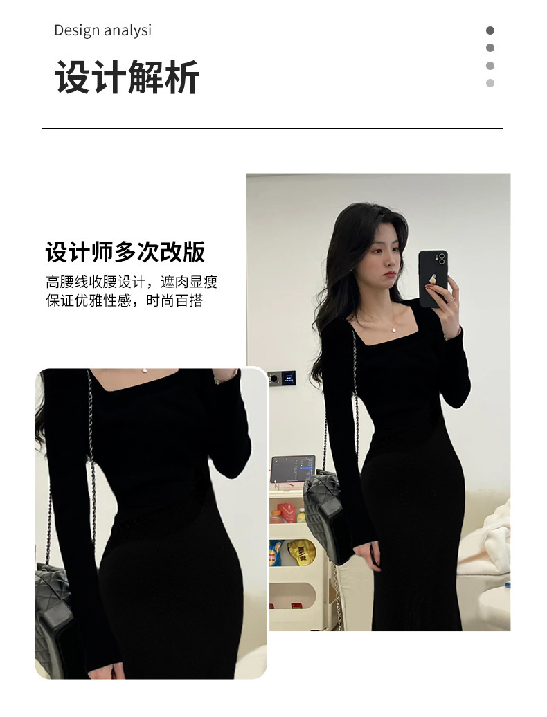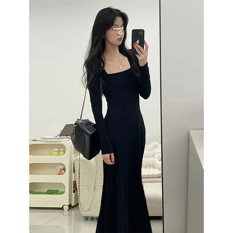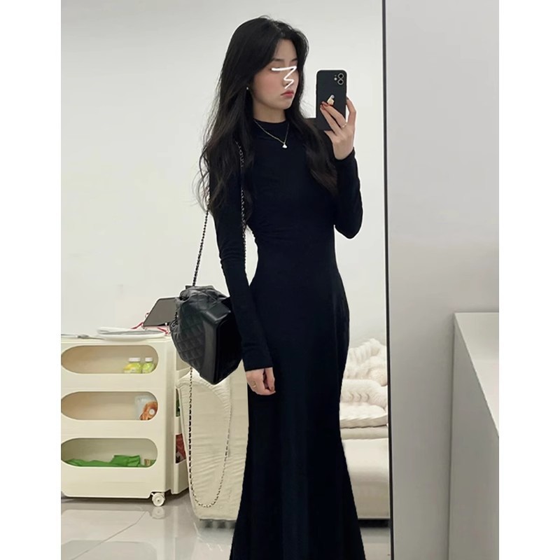 봄 피쉬 테일 엉덩이 랩 스커트 왕실 언니 원피스 여성 봄과 가을 검은 작은 어머니 긴 치마 세트 2024 년 새 계모스토어 가기