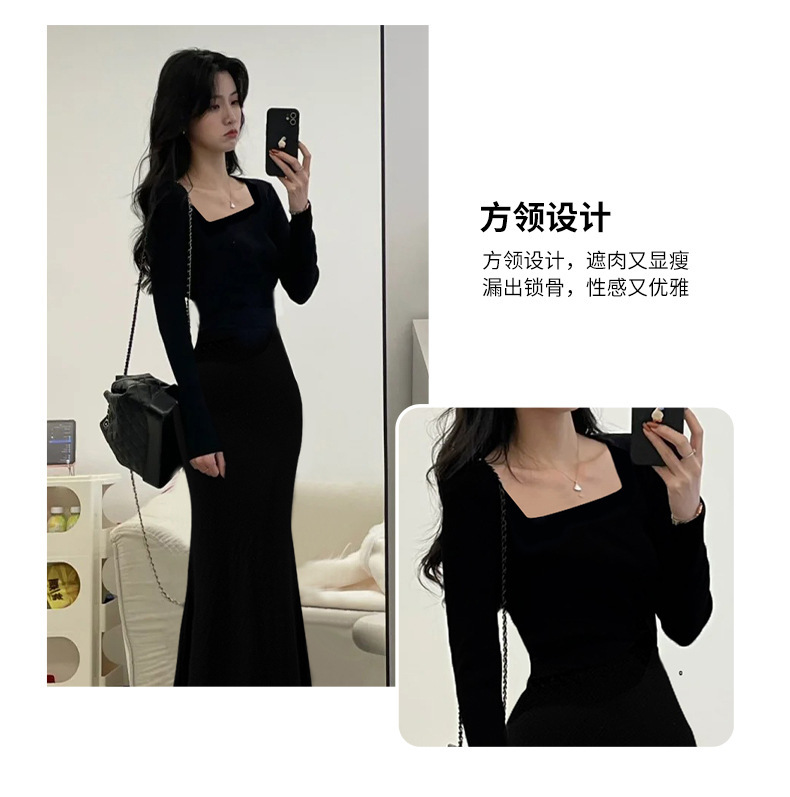 • 스퀘어넥-블랙 피쉬테일 스커트