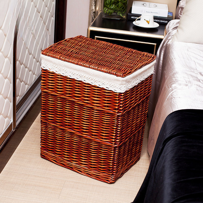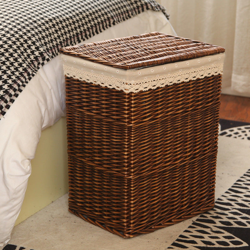 • 덮개가 있는 갈색 바구니 리넨 안감