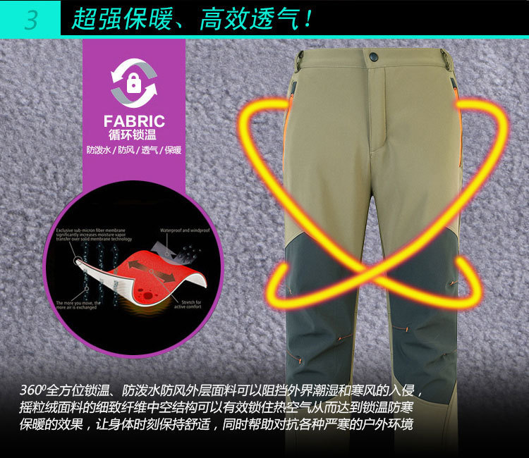 야외 소프트 쉘 러싱 바지 남성용 기모 방풍 방수 따뜻한 소프트 쉘 바지 여성용 루즈 플리스 스키 등산 바지
