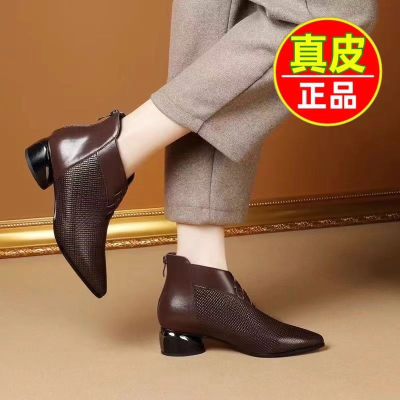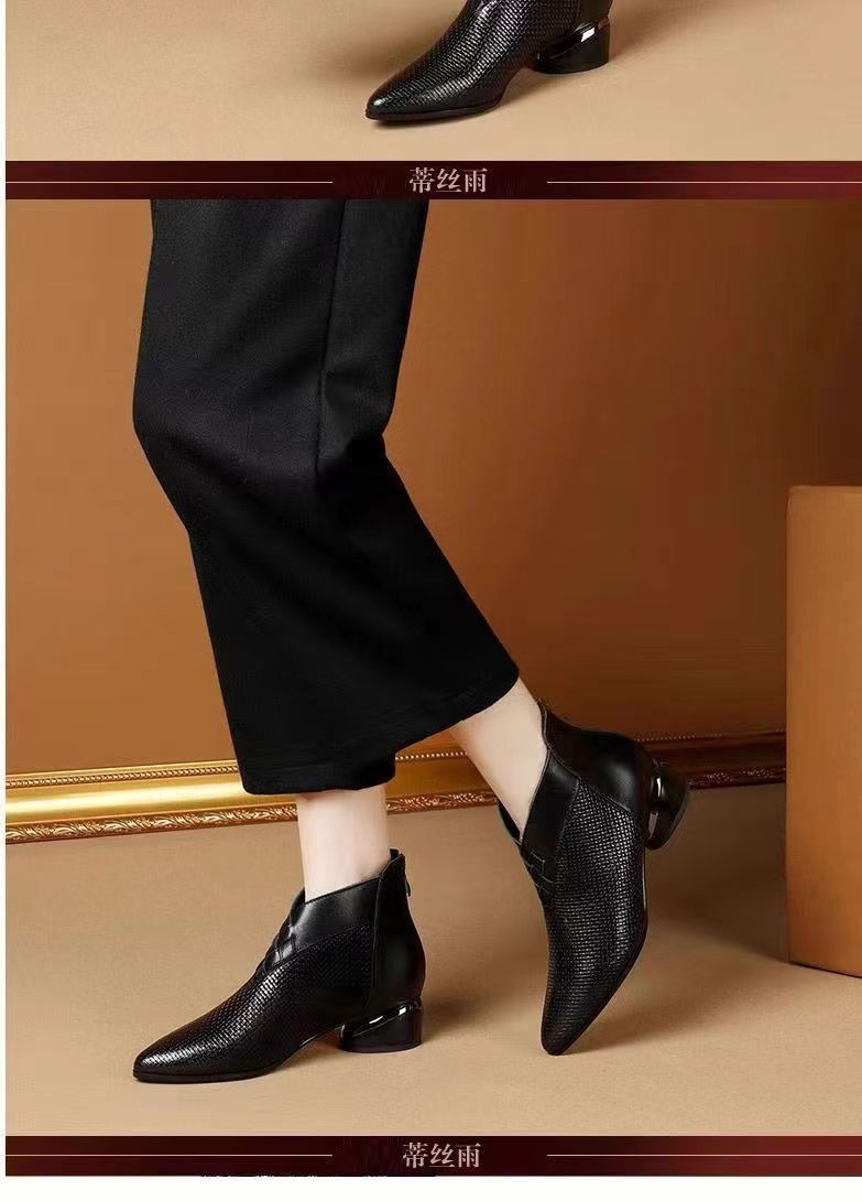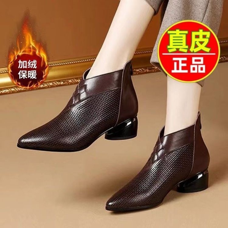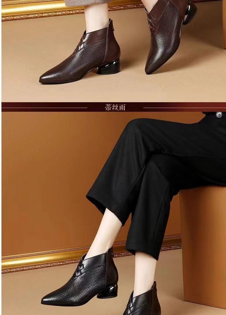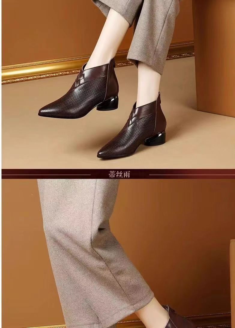 포인트 로우 힐 패션 부츠 2025 가을 겨울 새로운 올 매치 리어 지퍼 부츠 우아한 기모 패션 부츠 엄마 신발스토어 가기