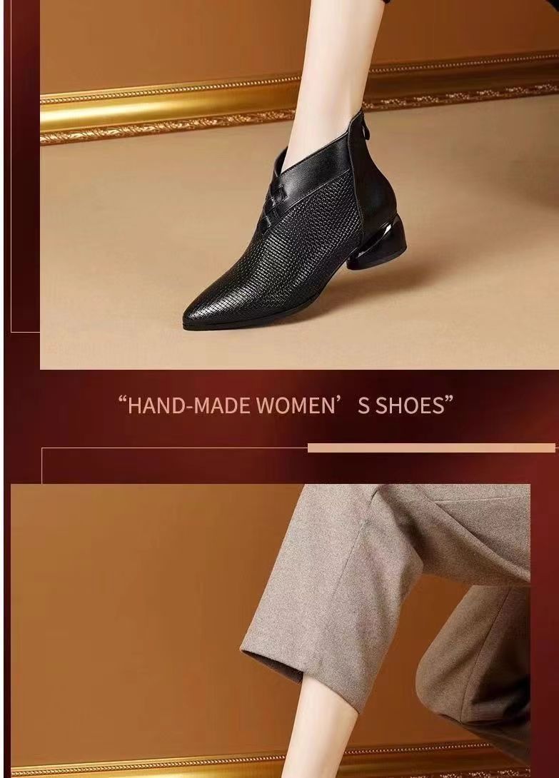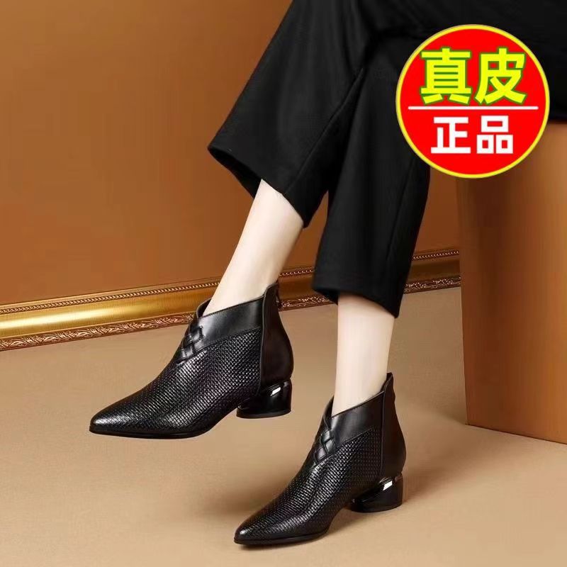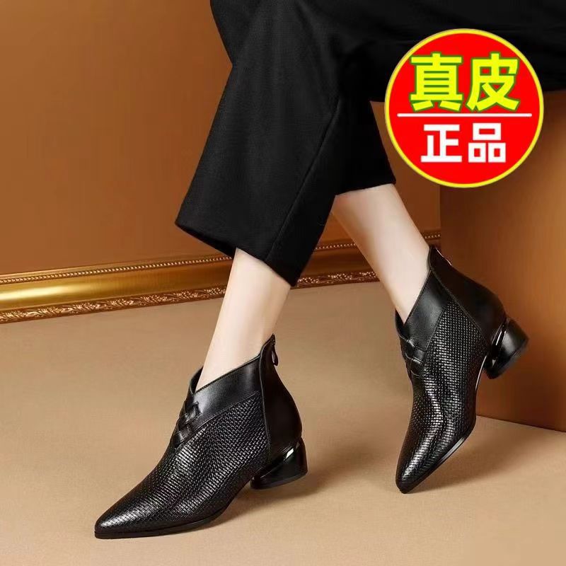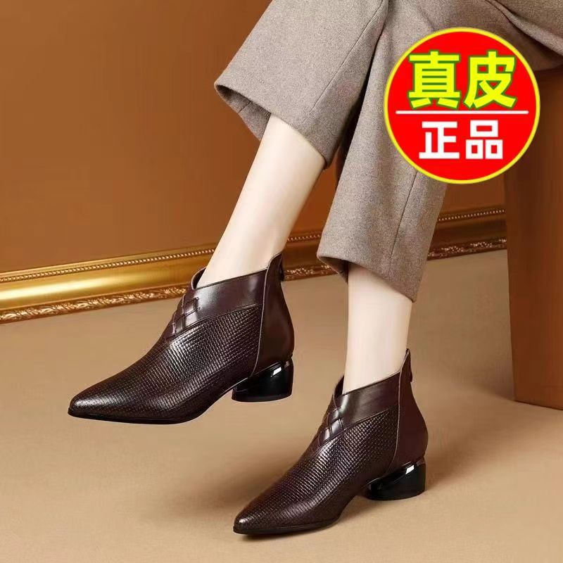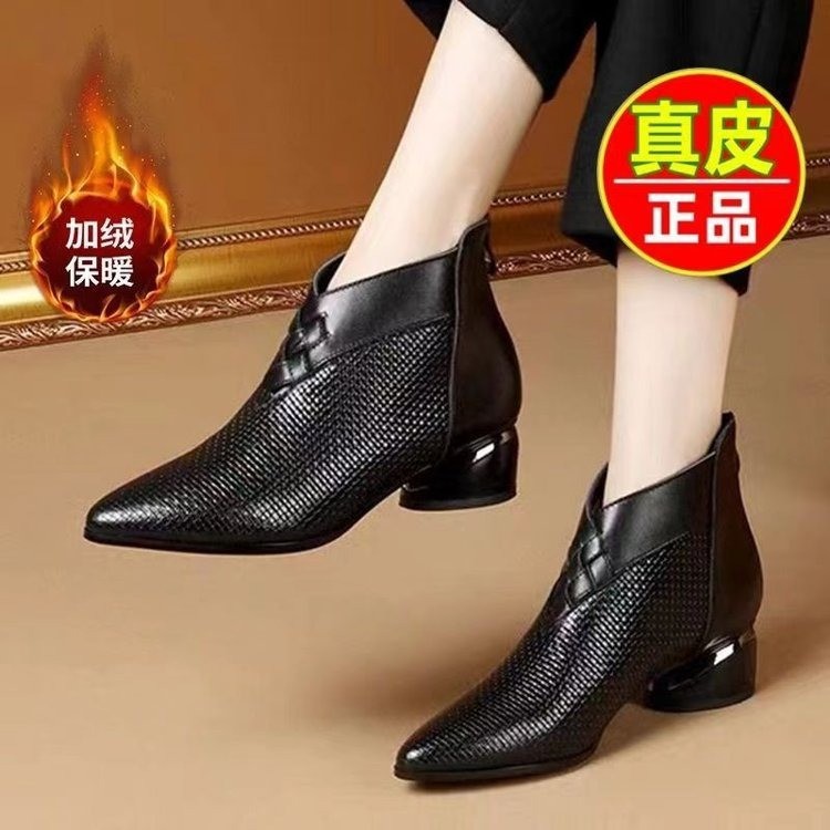포인트 로우 힐 패션 부츠 2025 가을 겨울 새로운 올 매치 리어 지퍼 부츠 우아한 기모 패션 부츠 엄마 신발스토어 가기