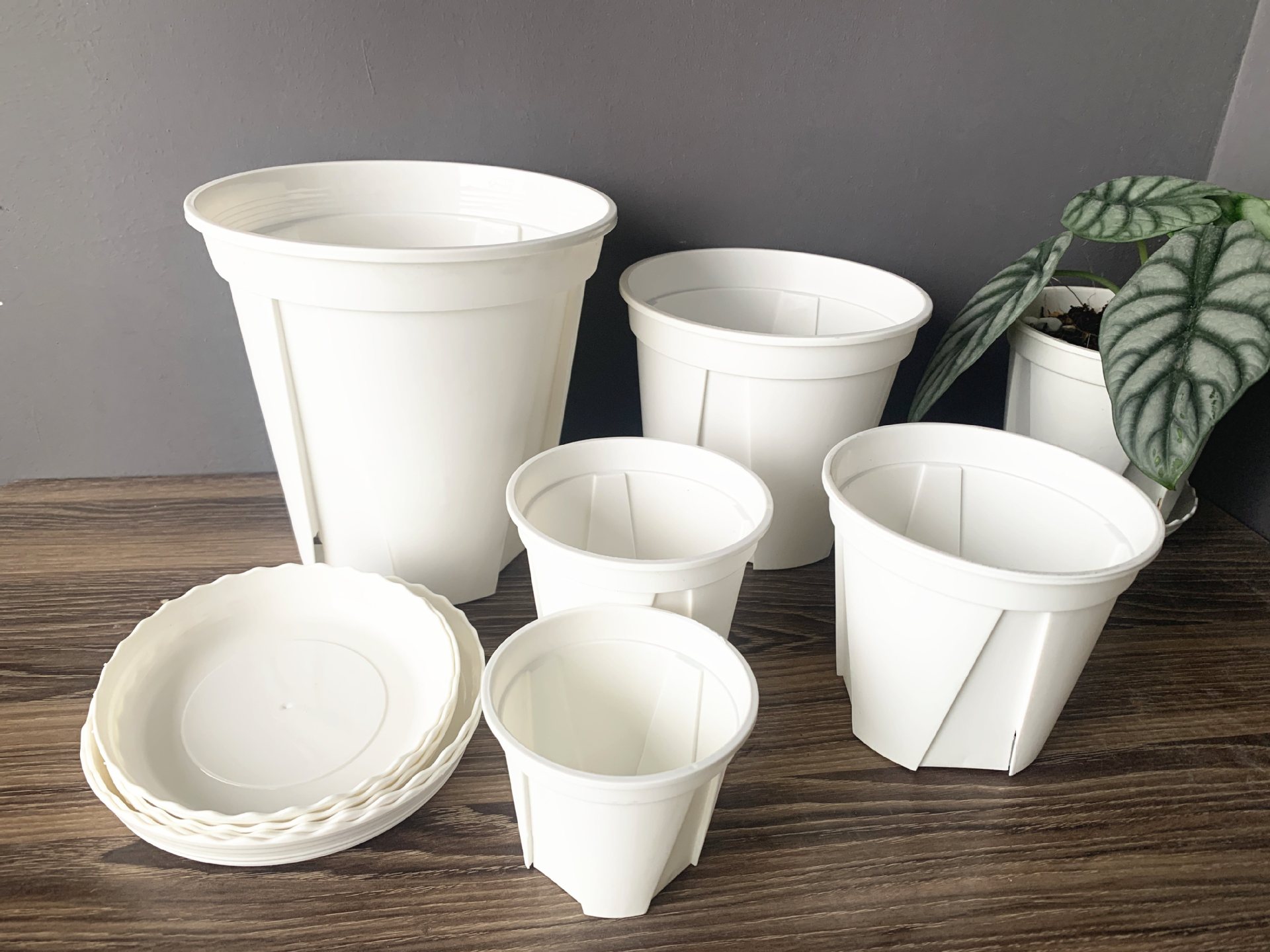 화이트 캐슬 피크 배수 통기성 뿌리 통제 분지 화이트 캐슬 피크 인 그물 레드 핫 그린 심기 라운드 작은 플라스틱 꽃 냄비 트레이