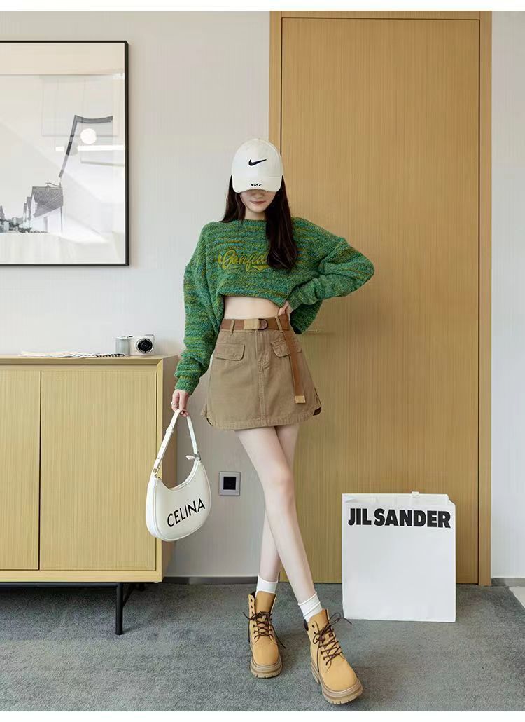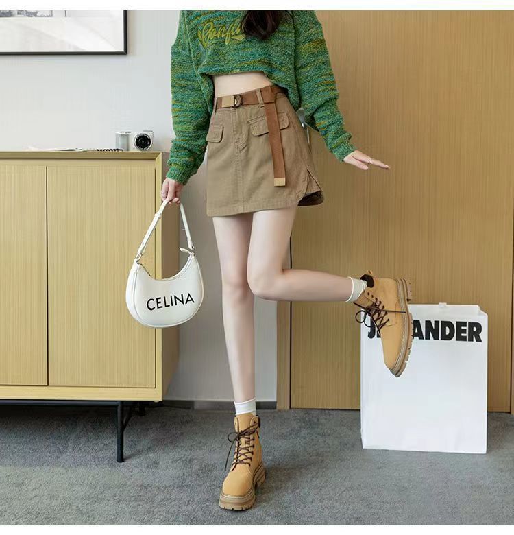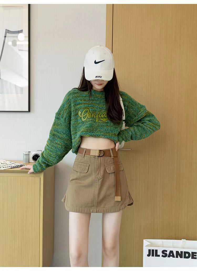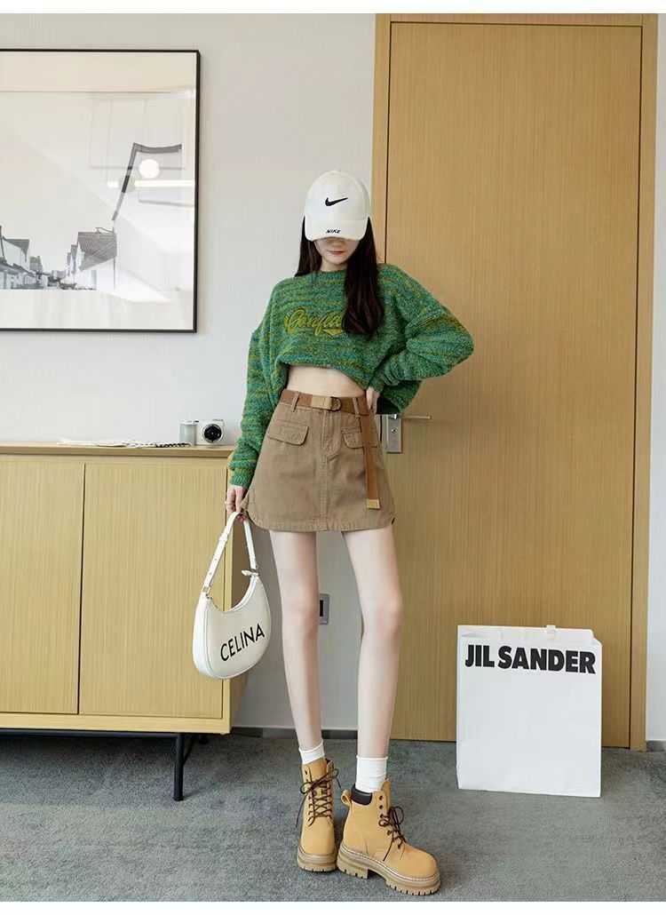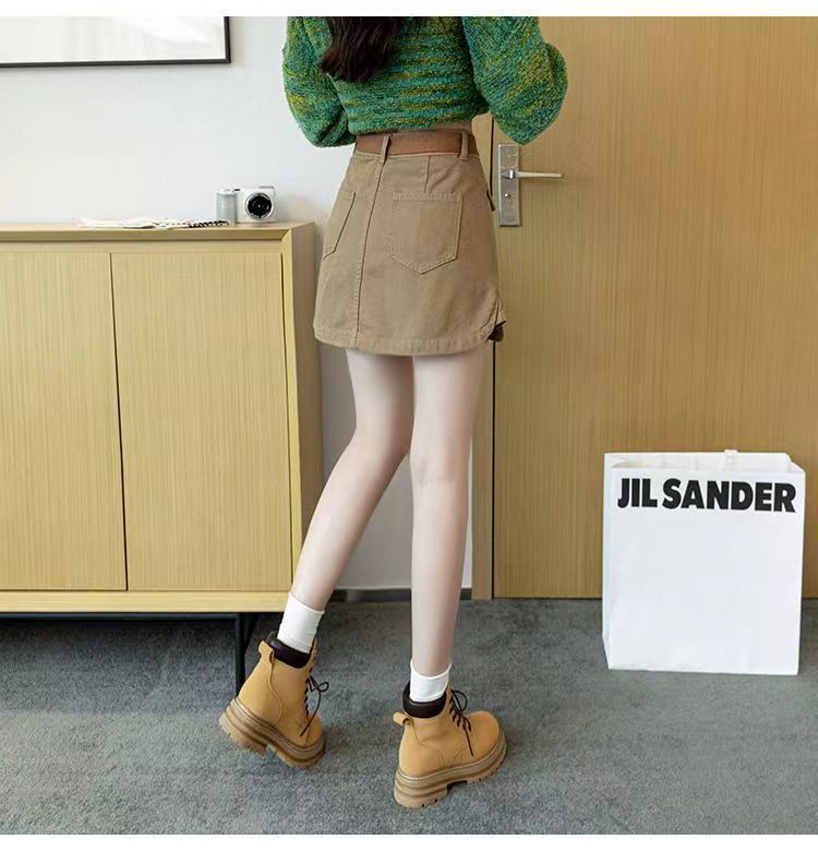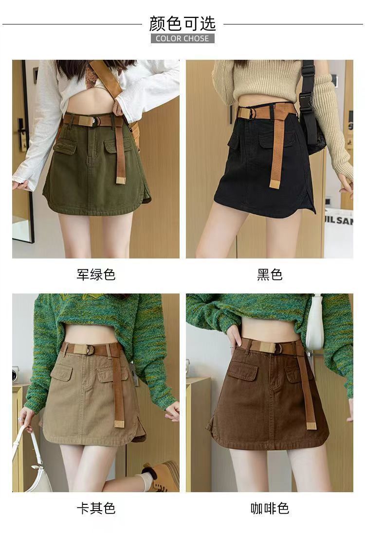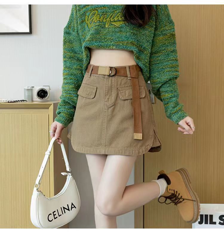 2024 여름 새 카키 레트로 높은 허리 데님 스커트 여성용 미끄럼 방지 랩 힙합 스커트 여성스토어 가기