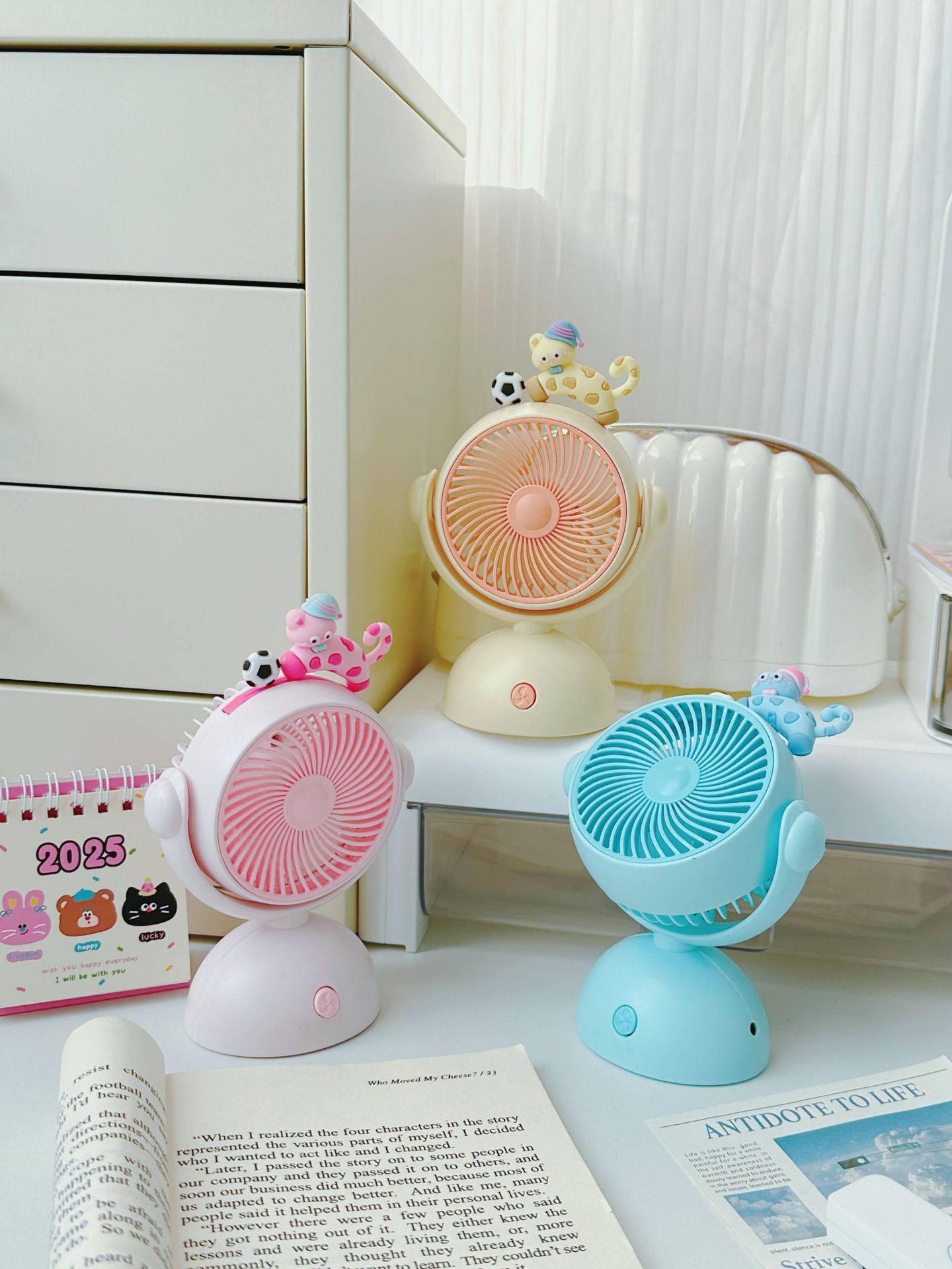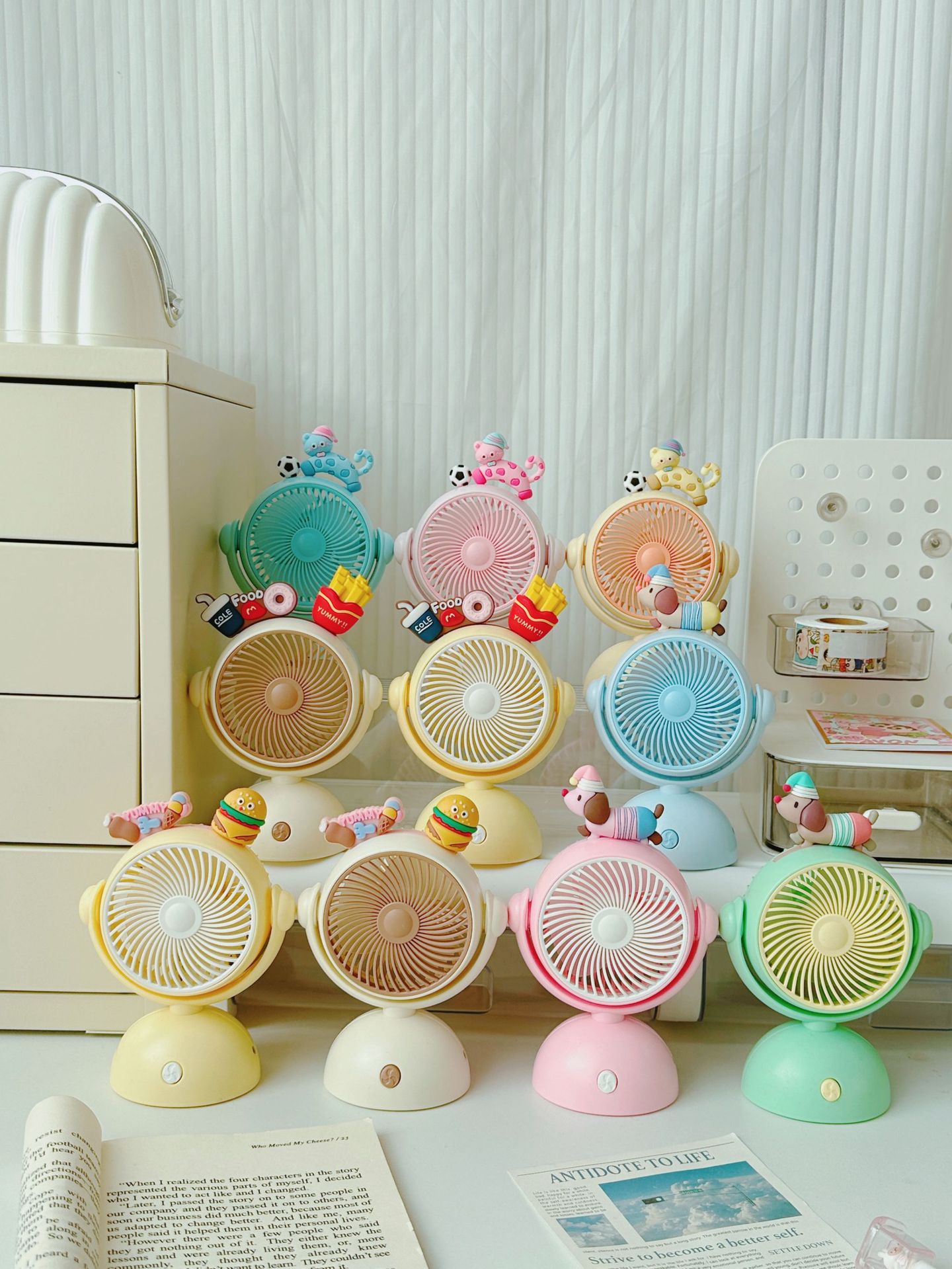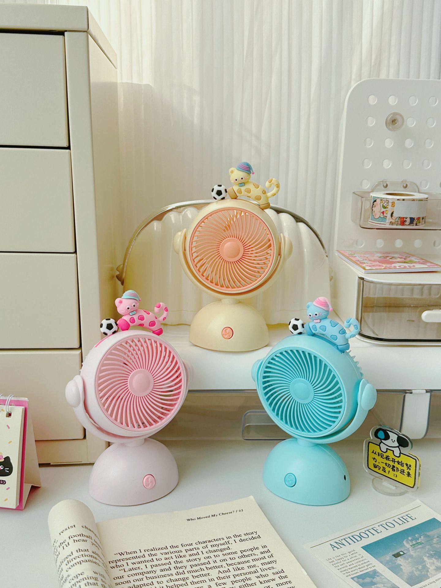데스크탑 만화 USB 충전 작은 팬 조정 각도 미니 팬 학생 기숙사 침대 옆 작은 팬
