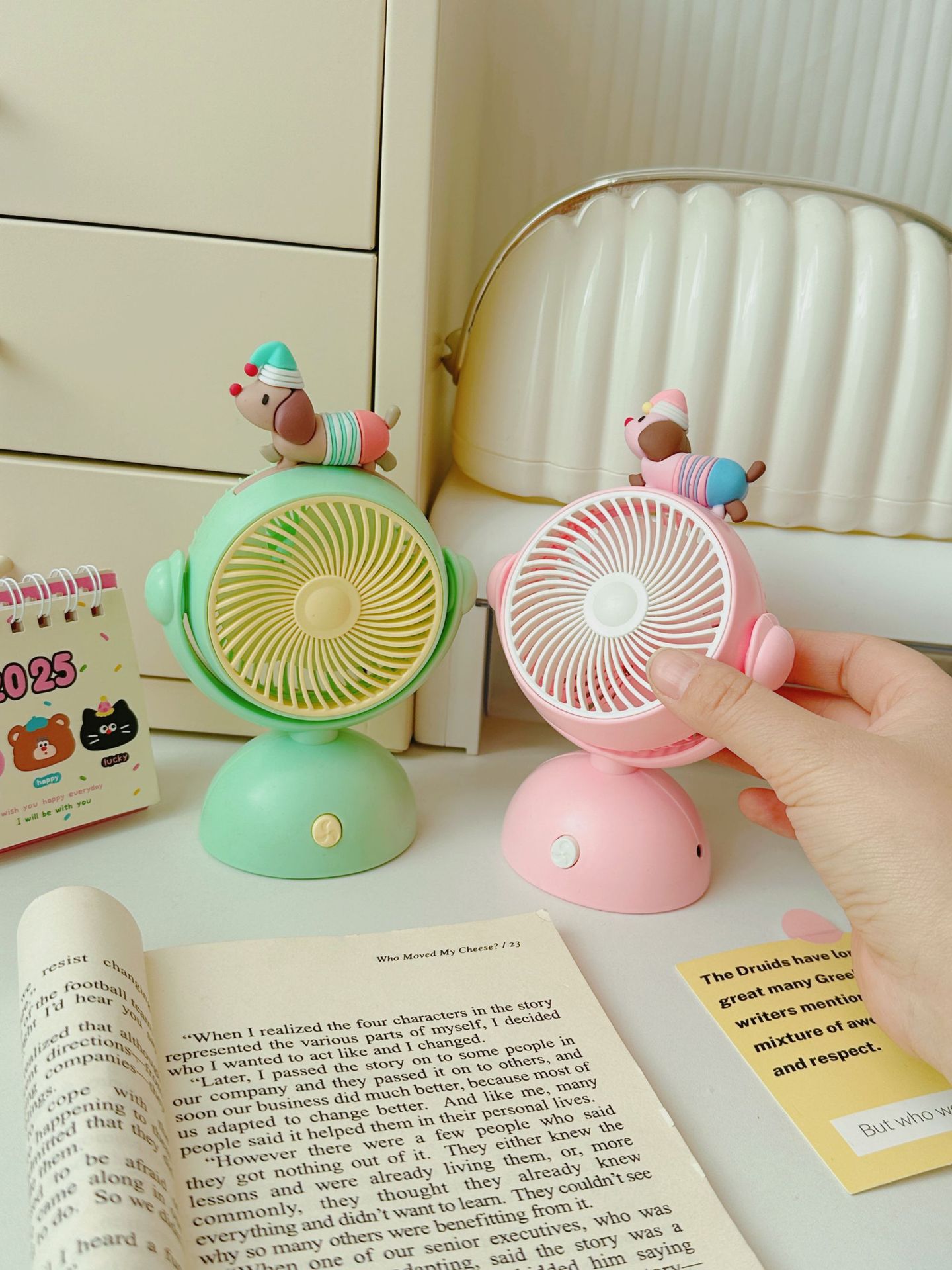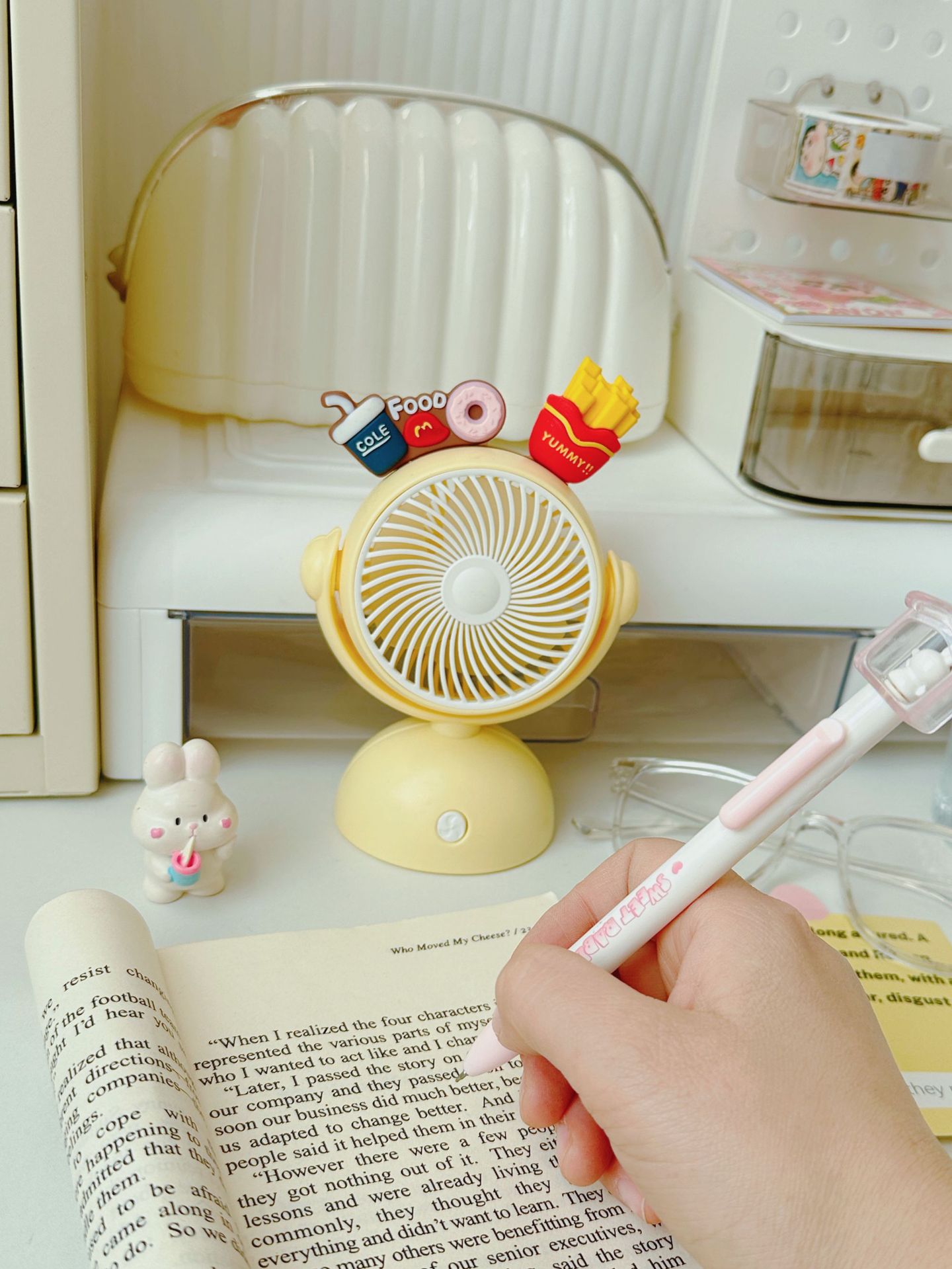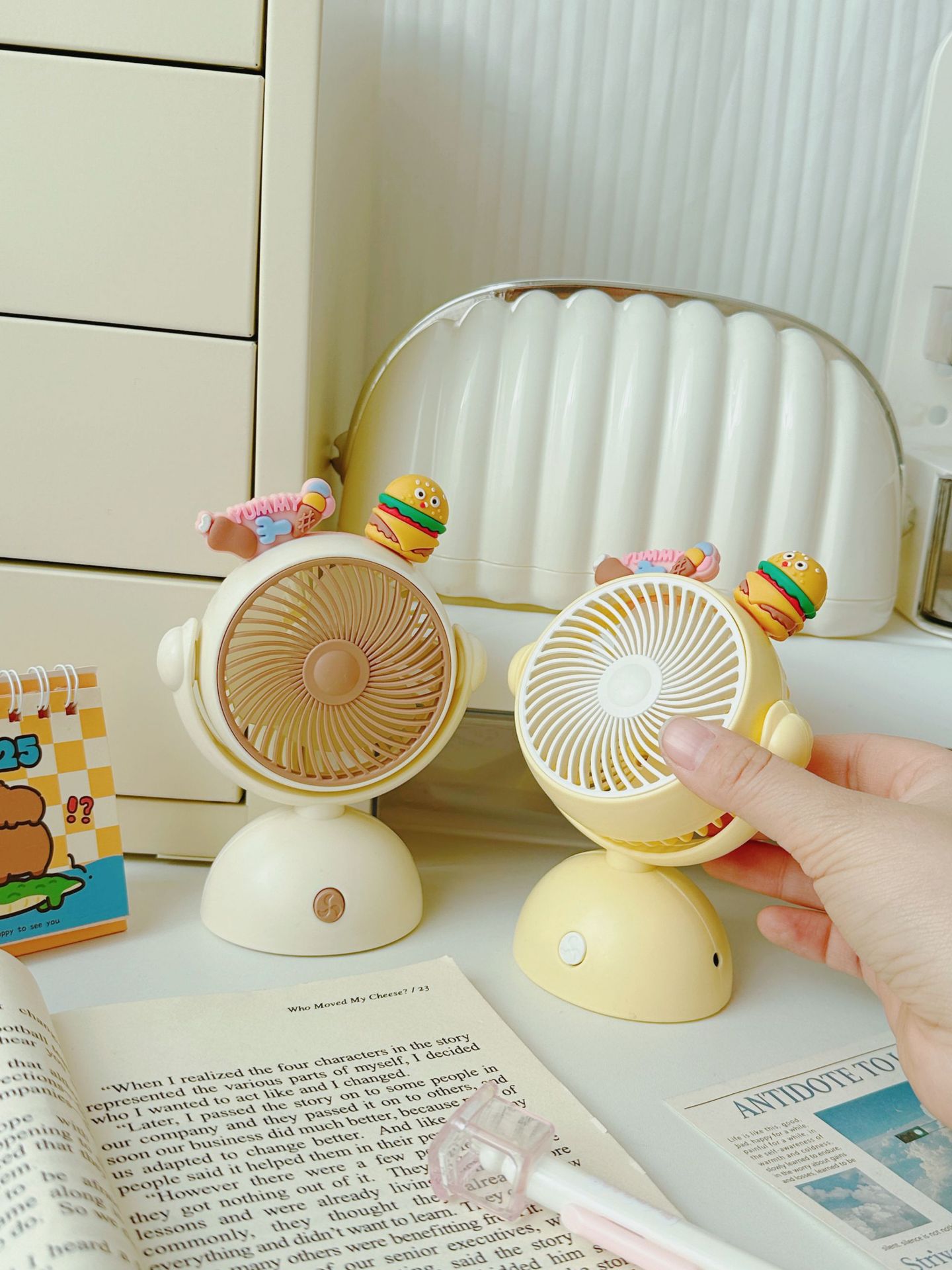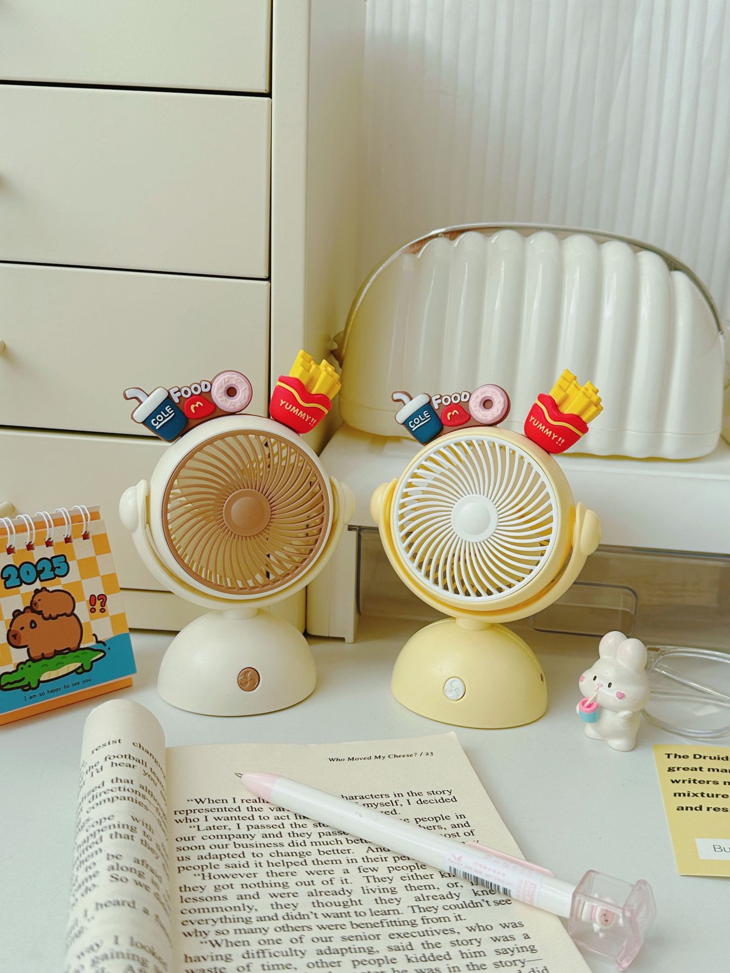 데스크탑 만화 USB 충전 작은 팬 조정 각도 미니 팬 학생 기숙사 침대 옆 작은 팬