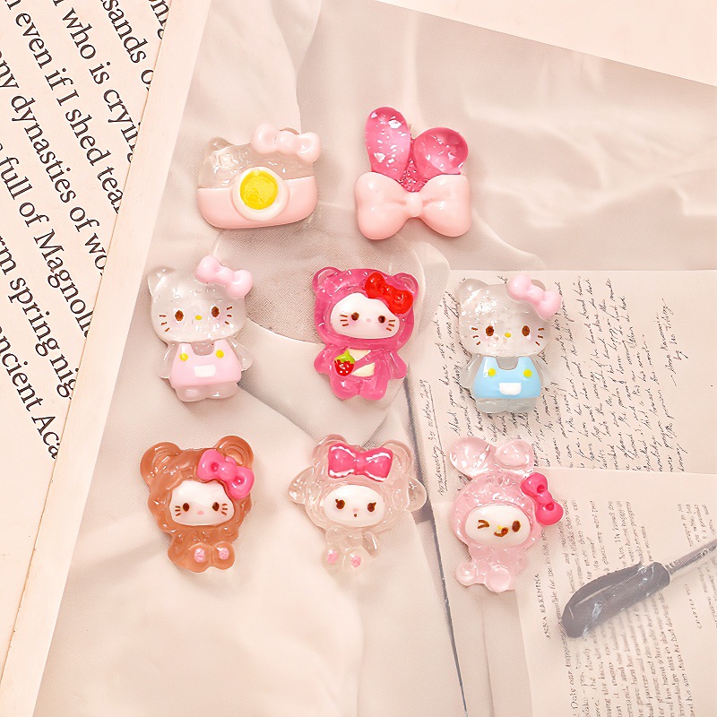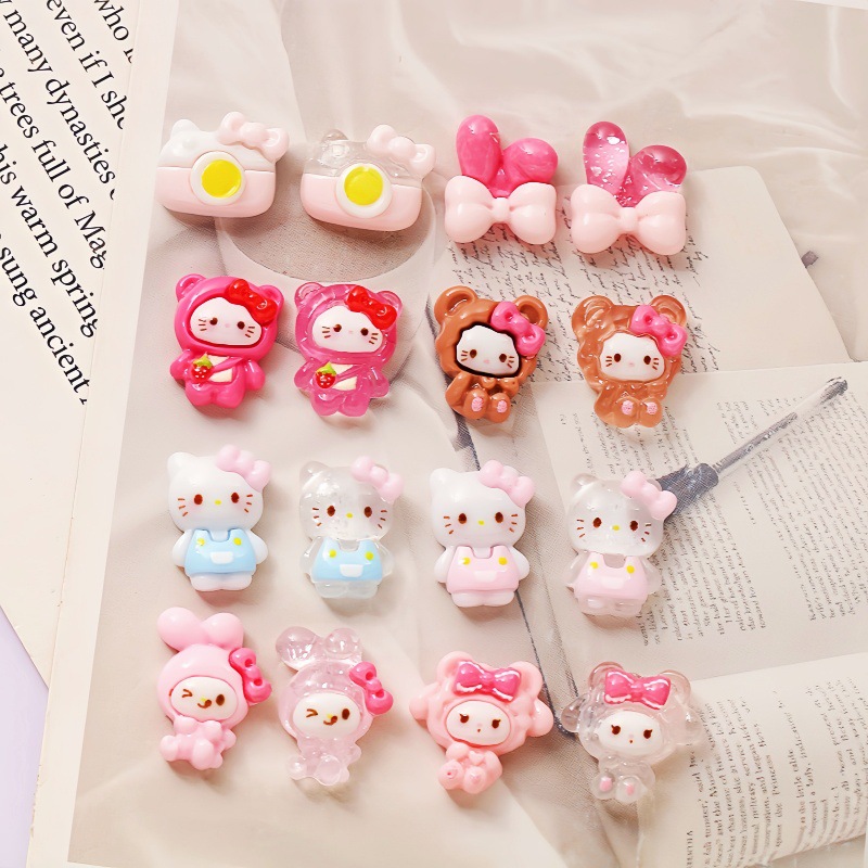 산리오 카툰 네일 아트 액세서리 귀여운 3 차원 KT 카메라 멜로디 디리 수지 착용 갑옷 귀걸이 액세서리
