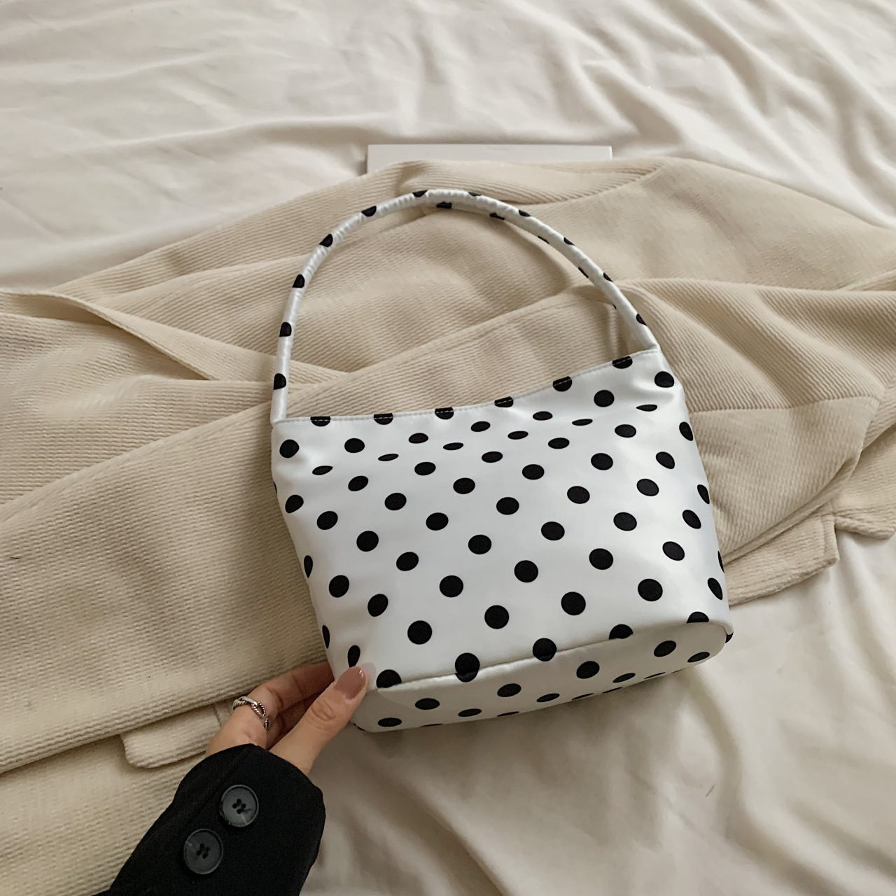 한 어깨 미니 스팟 Xiaozhong 봄과 여름 가방 유행 작은 가방 캐주얼 토트 새로운 가방 여성 가방 2025 웨이브 포인트 손 운반