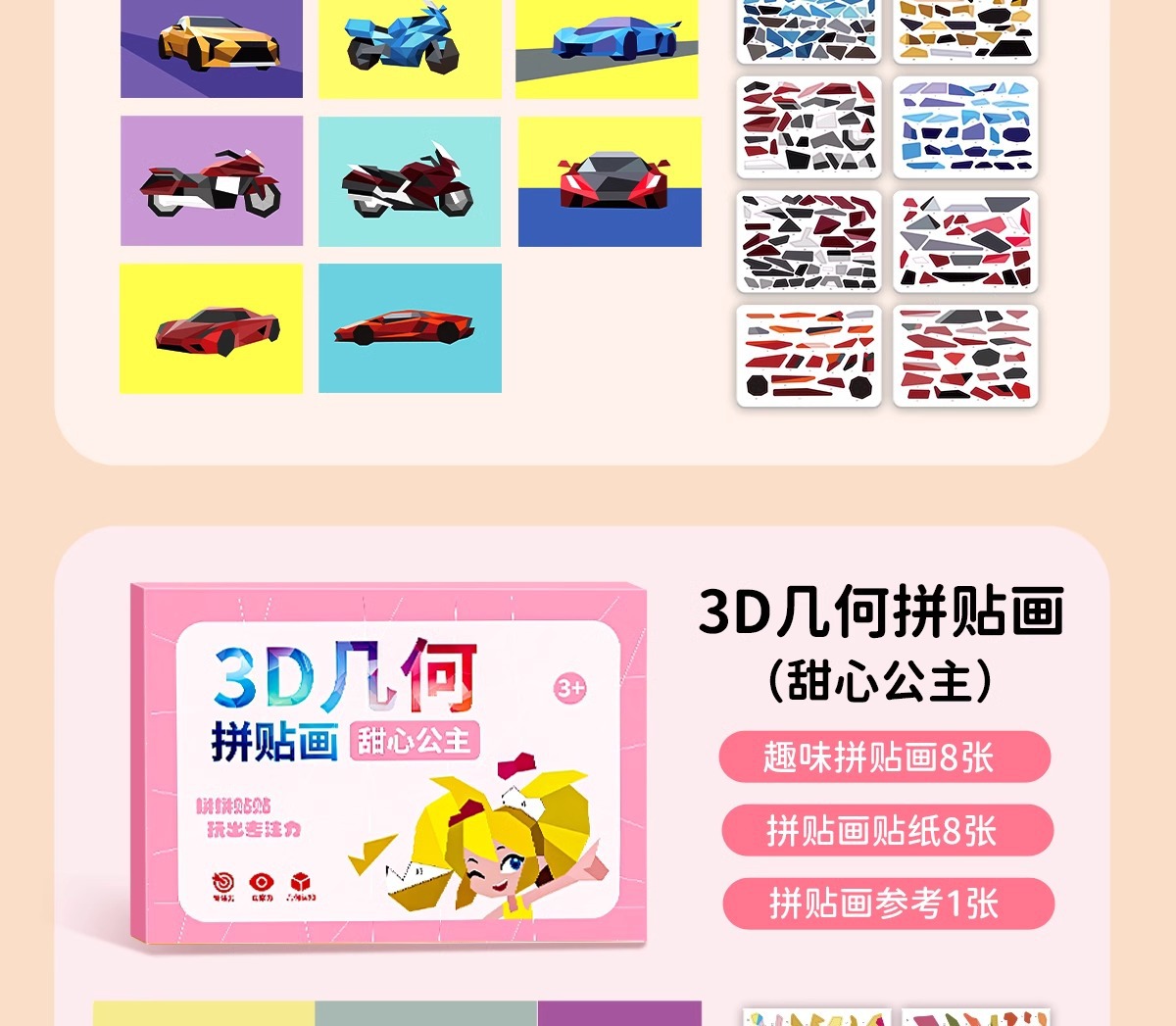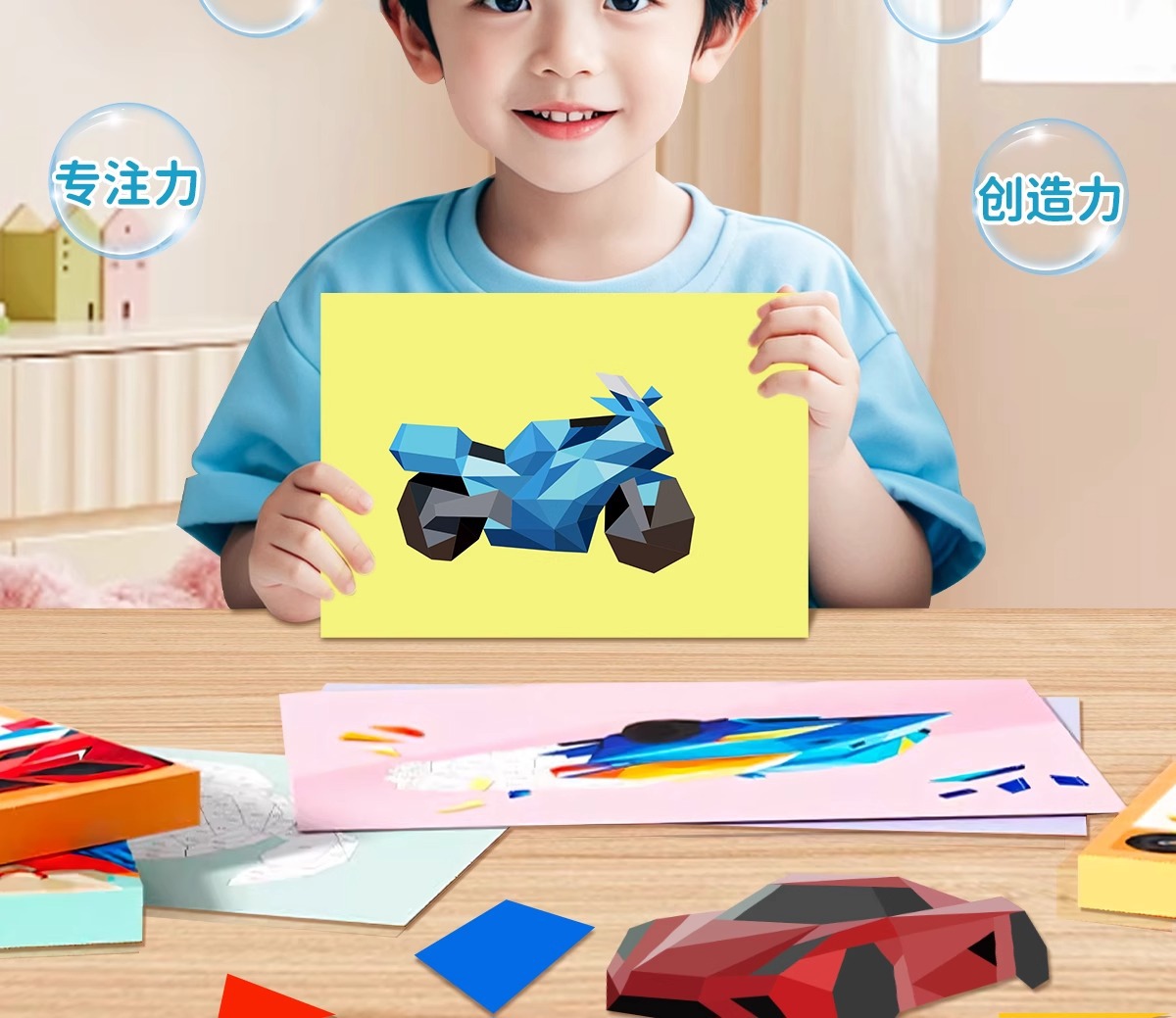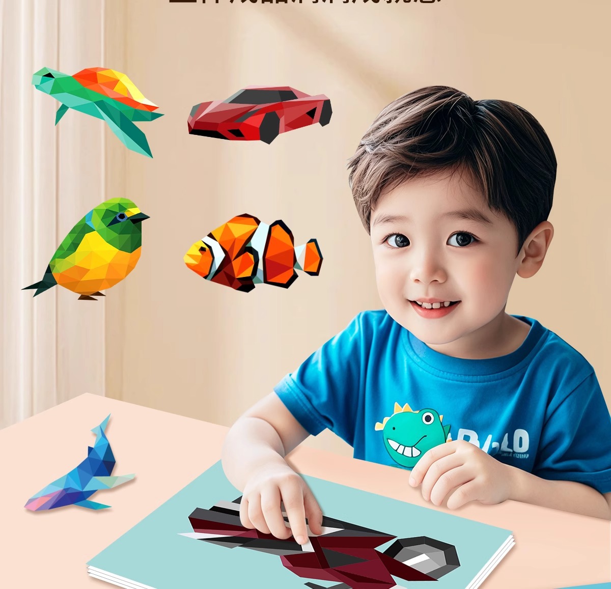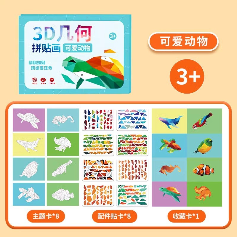 어린이 3D 기하학적 콜라주 3 차원 교육 장난감 유치원 집중 어린이 수제 DIY 스티커스토어 가기