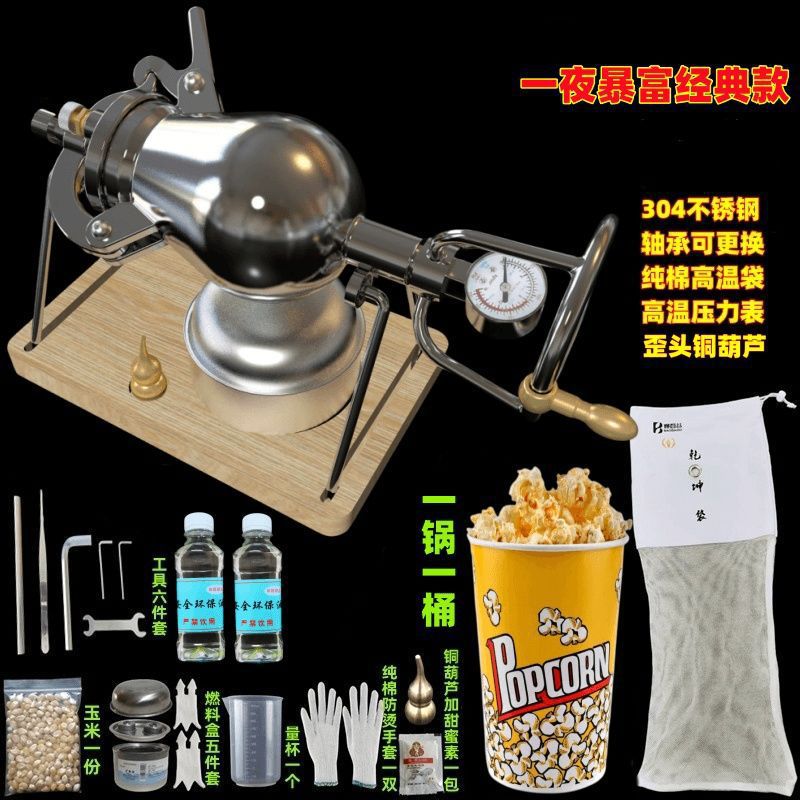 가정용 미니 팝콘 기계 곡물 증폭기 304 스테인레스 스틸 구식 수제 팝콘 스토브 새로운 스타일