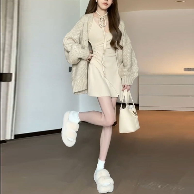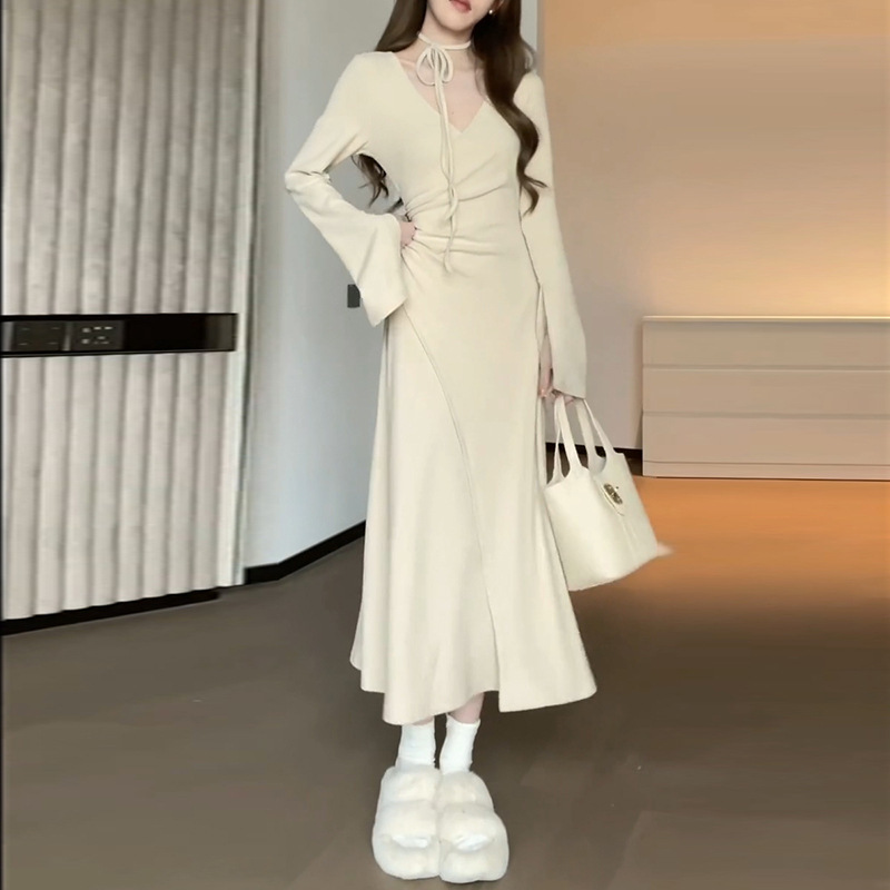 • 그레이 살구 롱 스타일 [연예인 서스펜더 스커트/프렌치 드레스/기질 드레스 여신 스타일