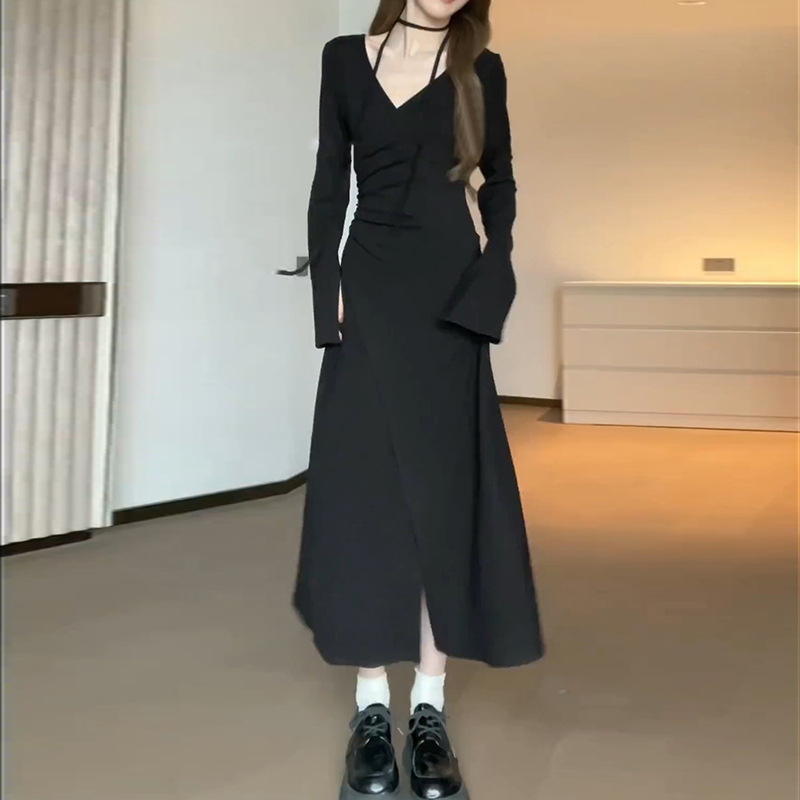 • 블랙 롱 스타일 [연예인 서스펜더 스커트/프렌치 드레스/기질 드레스 여신 스타일/
