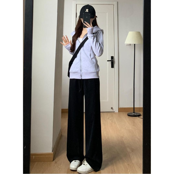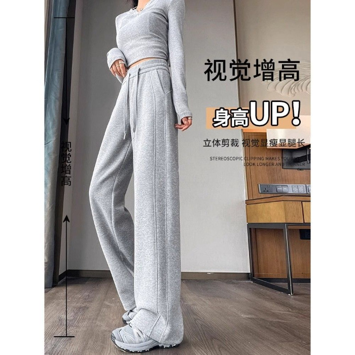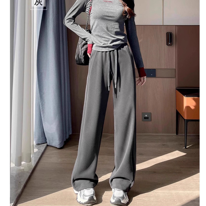 스포츠 바나나 바지 여자 2025 봄 새로운 높은 허리 느슨한 스트레이트 올 매치 아메리칸 스타일 투약 슬림 와이드 다리 바지