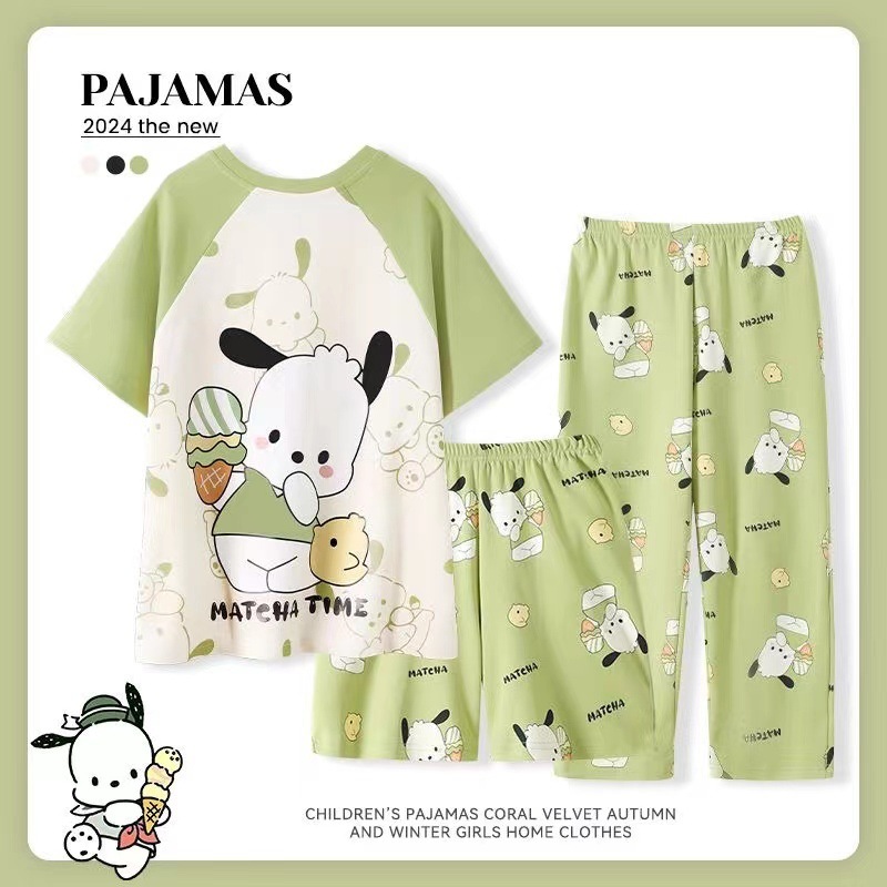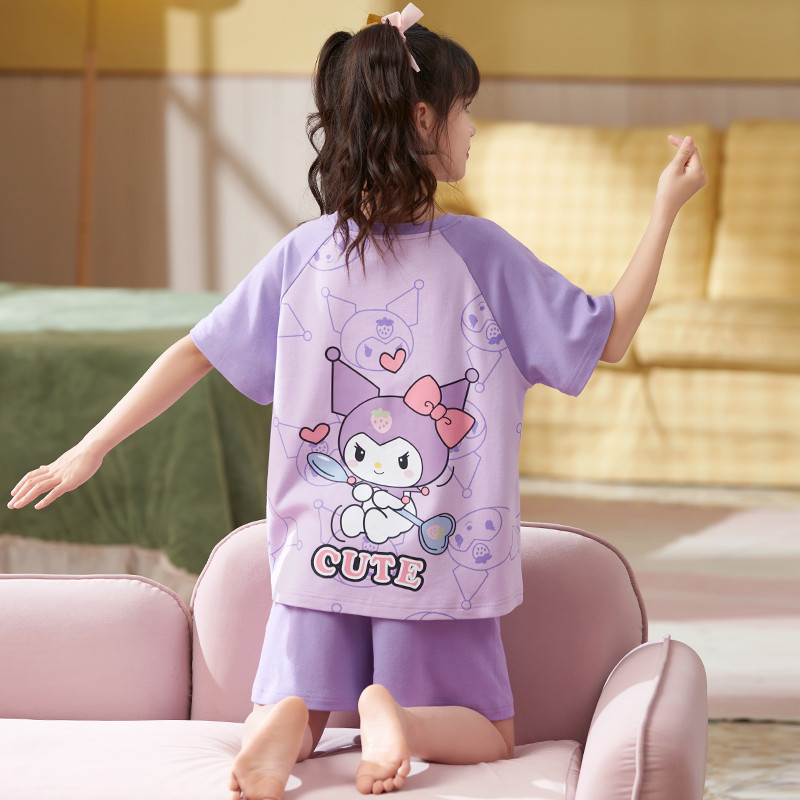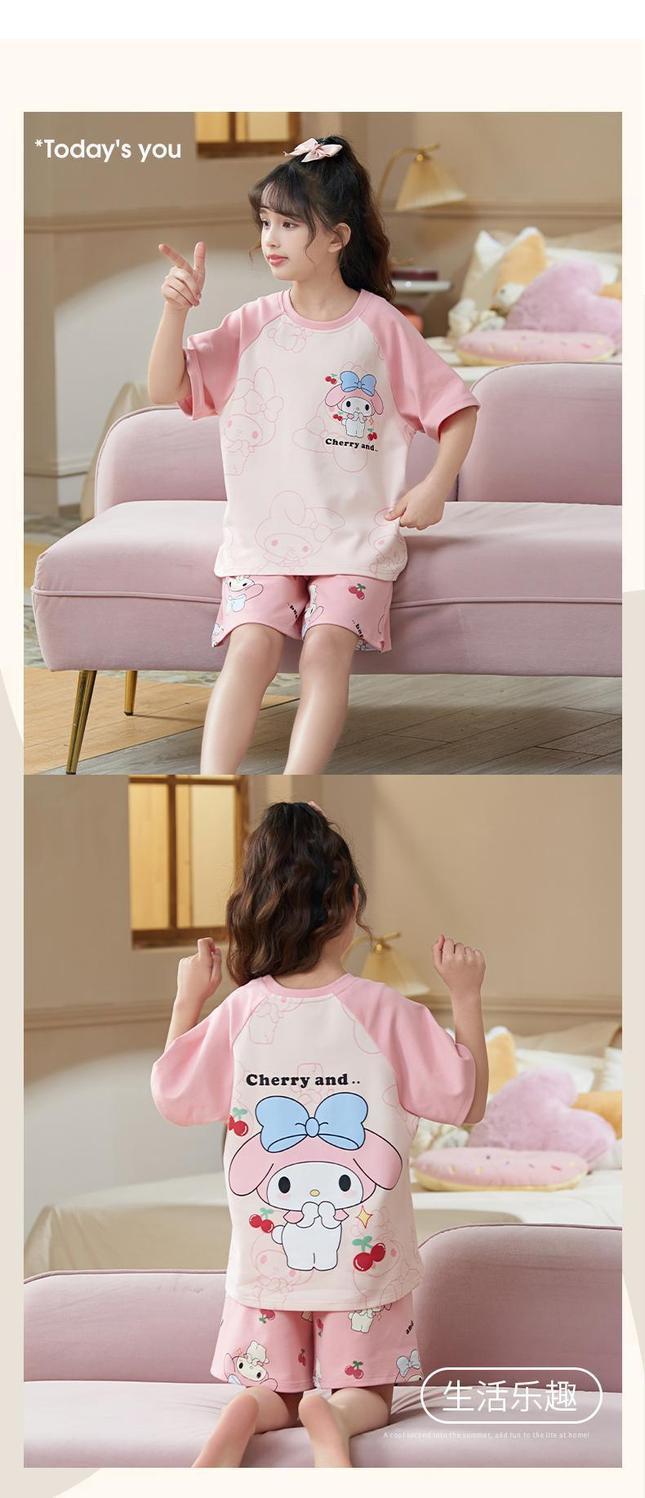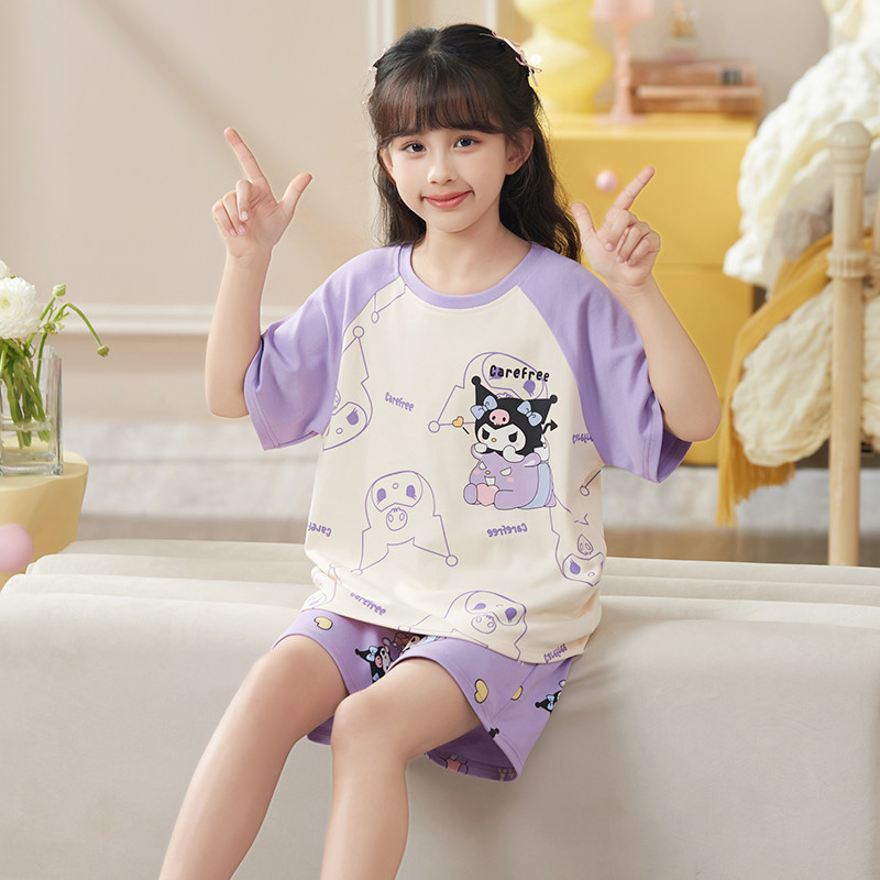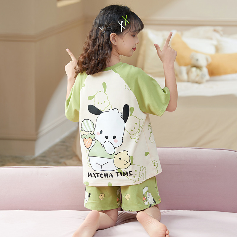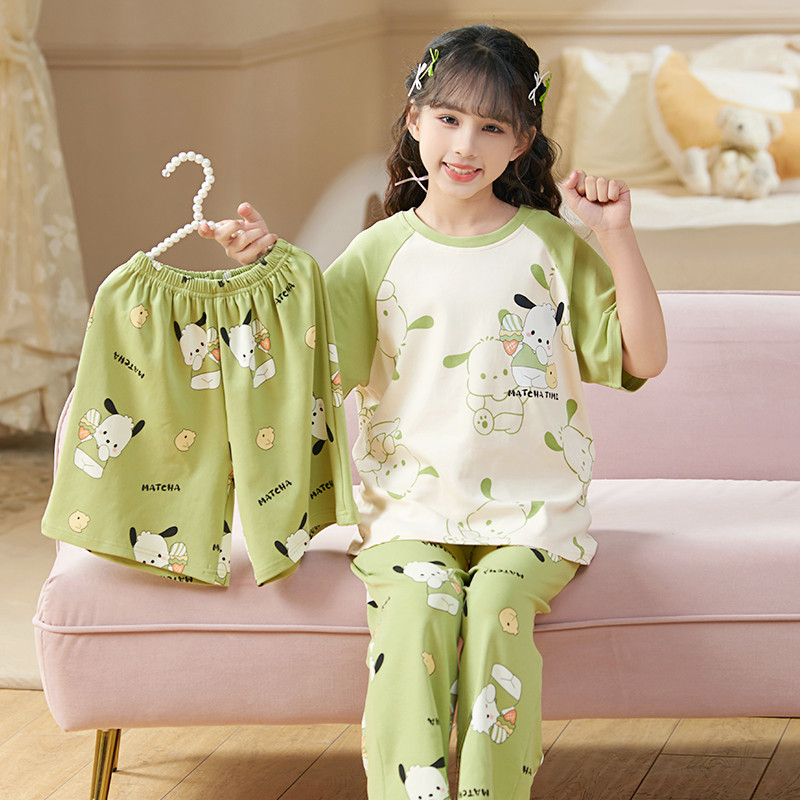 [2693 컬렉션] 여자 잠옷 2024 여름 얇은 반팔 바지 어린이 큰 어린이 공주 만화 여성스토어 가기