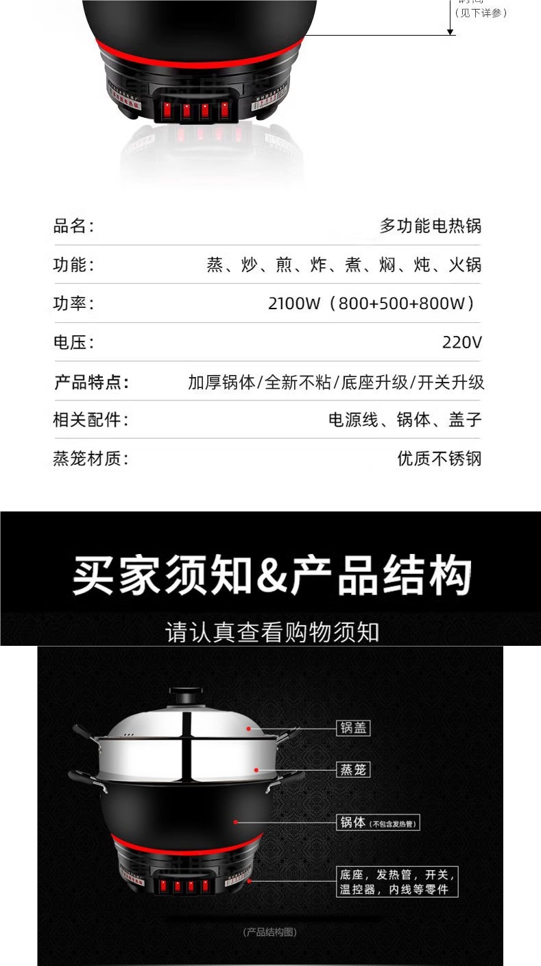 • 36cm 4스위치 모델 [싱글케이지 서랍] + 업그레이드된 초두꺼운 논스틱 팬 + 10년 + 플래그십