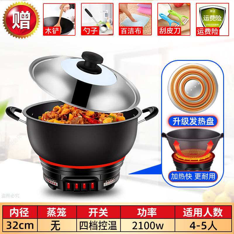 비 스틱 팬 전기 Wok 가정용 다기능 전기 난방 냄비 전기 뜨거운 냄비 스튜 냄비 전기 냄비 플러그 인 워크