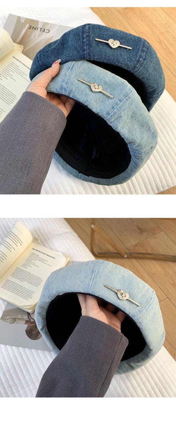 여름 여성을 위한 새로운 사랑 장식 데님 베레모 한국 스타일 다용도 얼굴 노출 작은 베레모 화가 모자 인터넷 연예인 모자스토어 가기