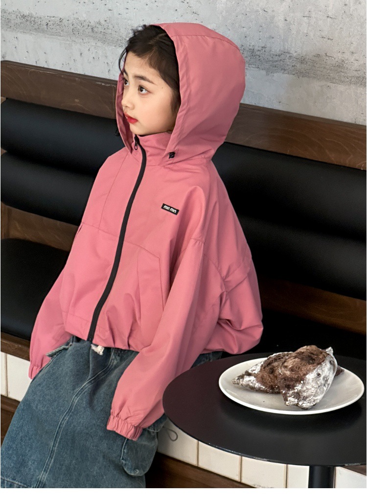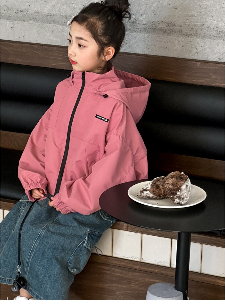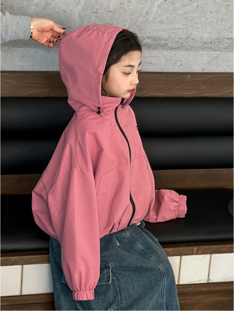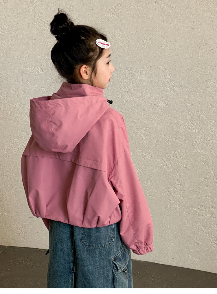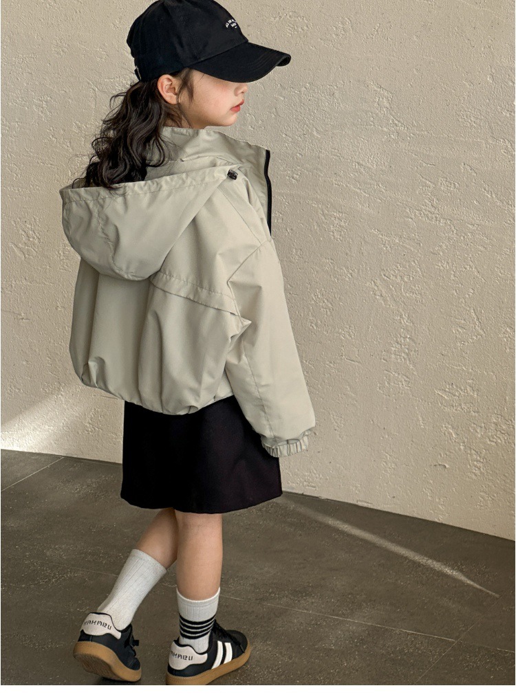 소녀 코트 코트 봄과 가을 2025 새로운 봄 착용 대형 어린이 얇은 야외 도구 이른 봄 후드 루소스토어 가기