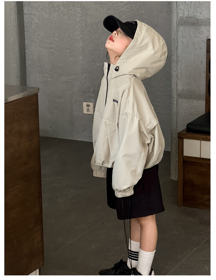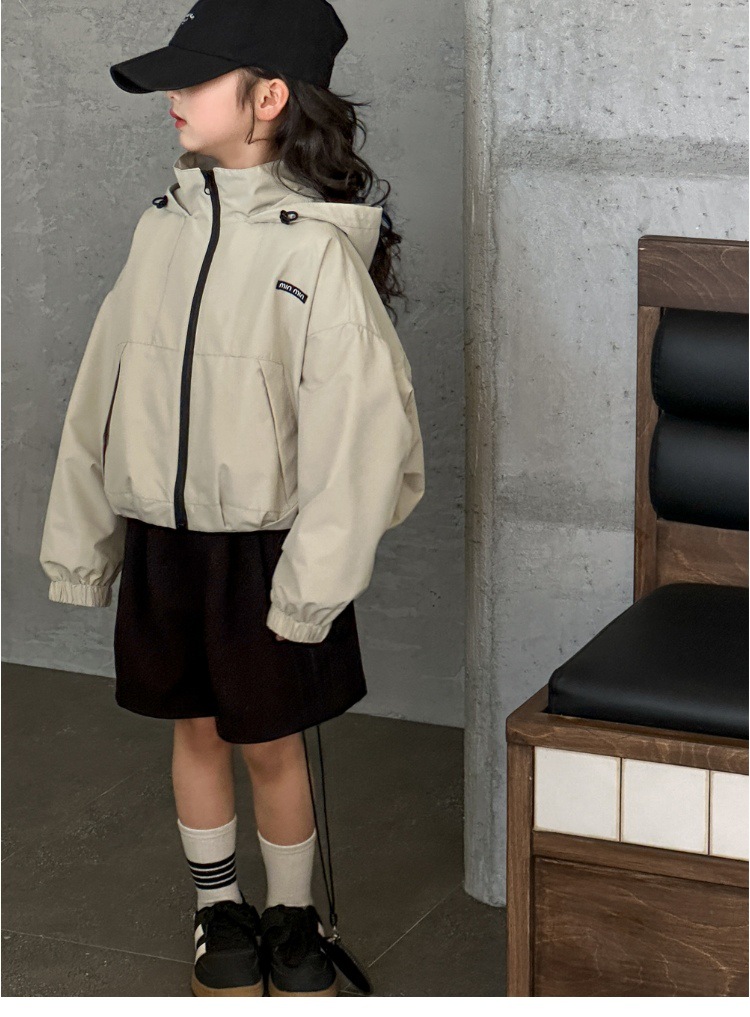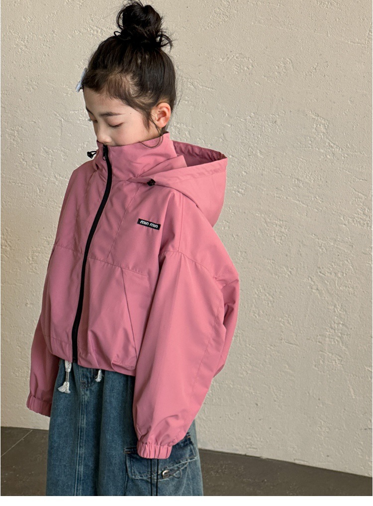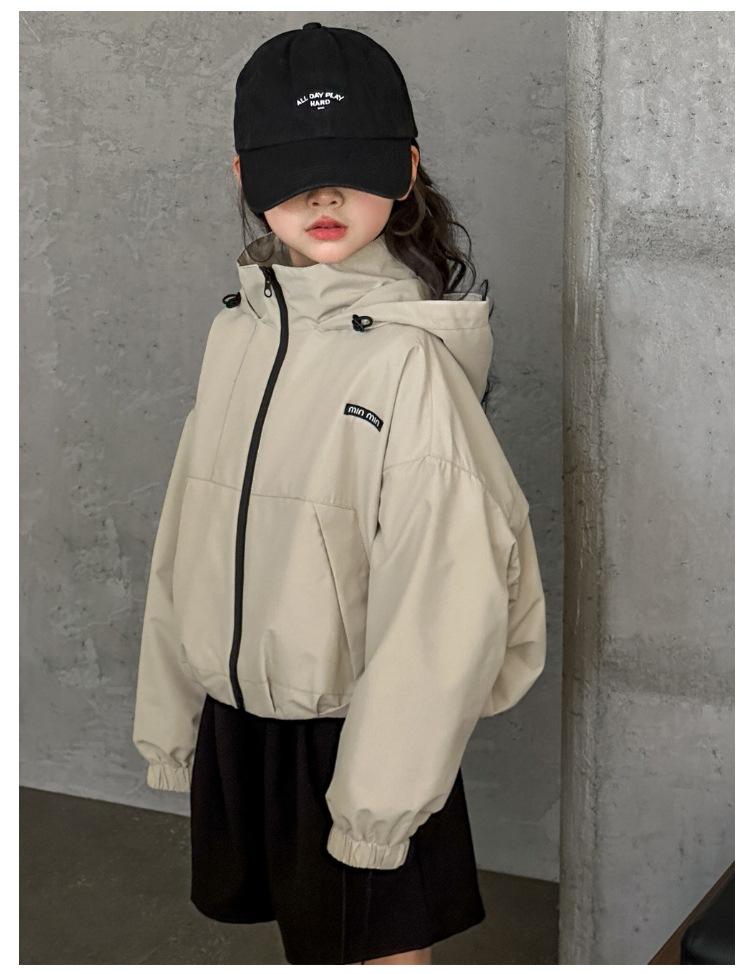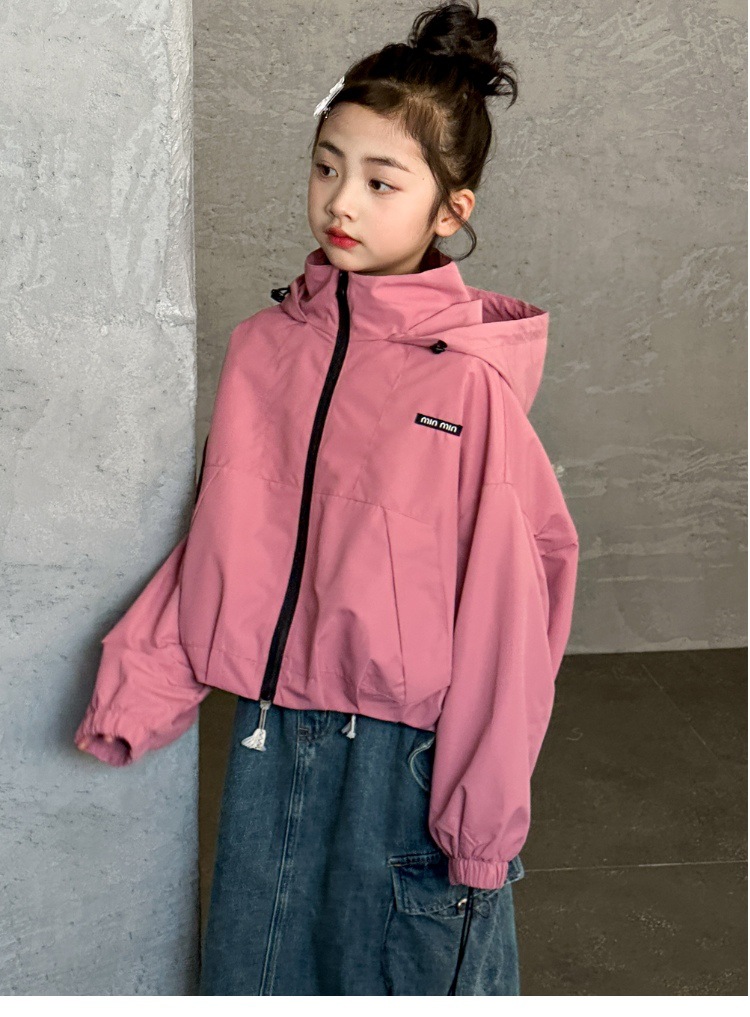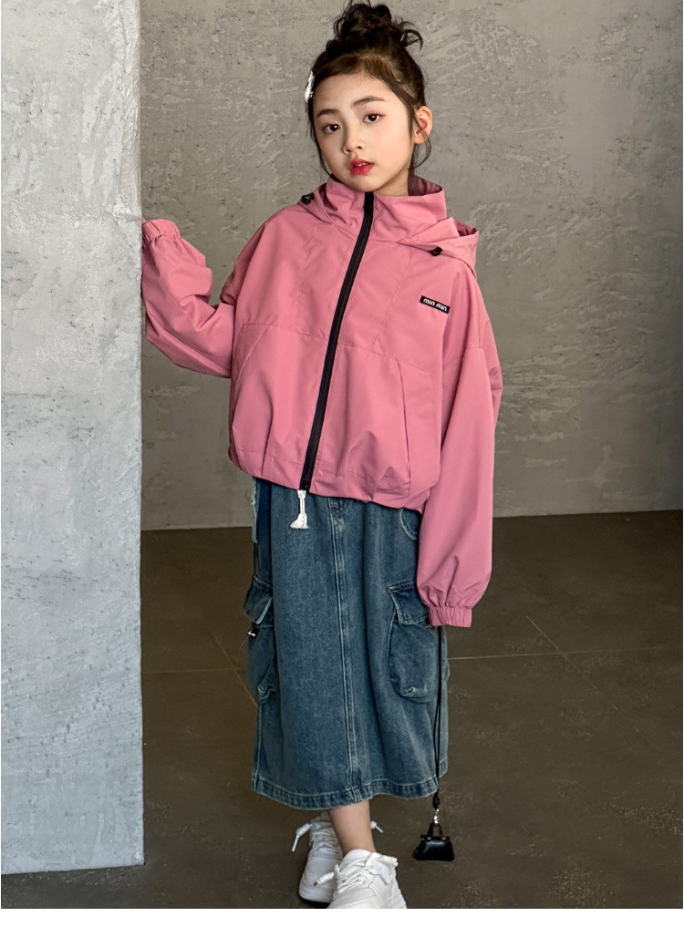 소녀 코트 코트 봄과 가을 2025 새로운 봄 착용 대형 어린이 얇은 야외 도구 이른 봄 후드 루소스토어 가기