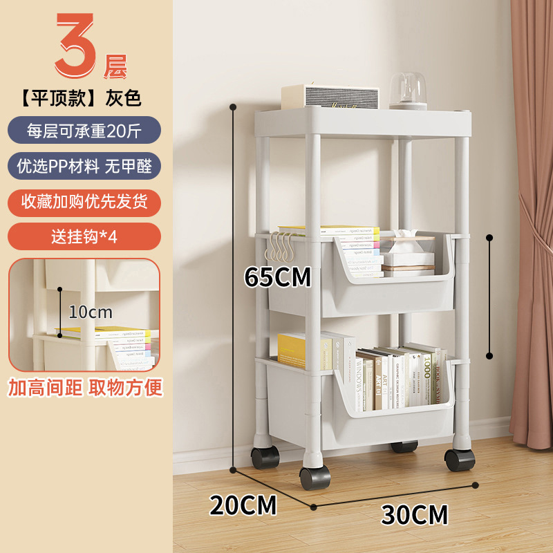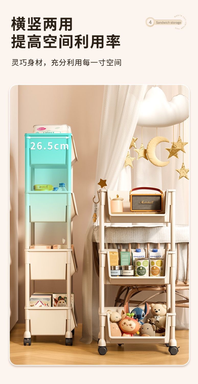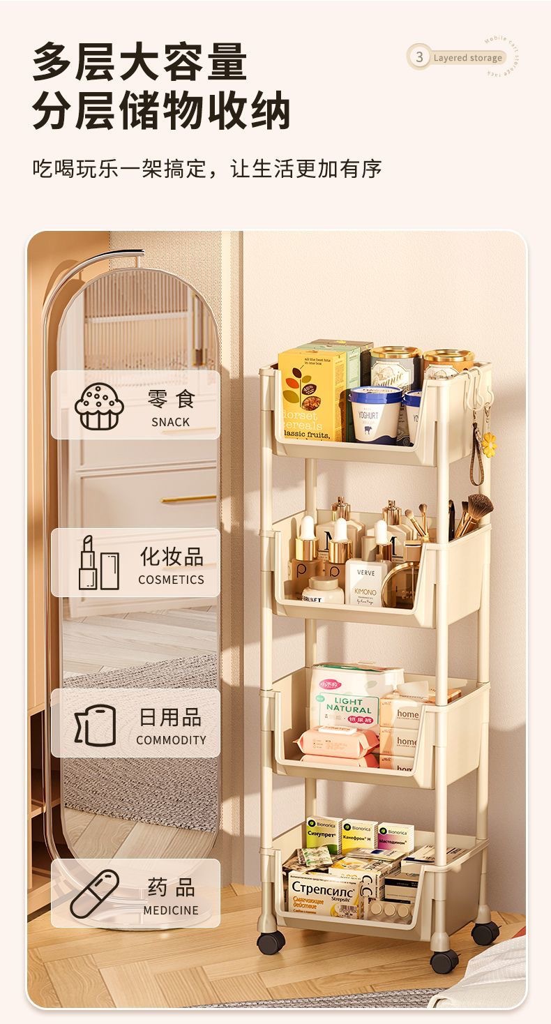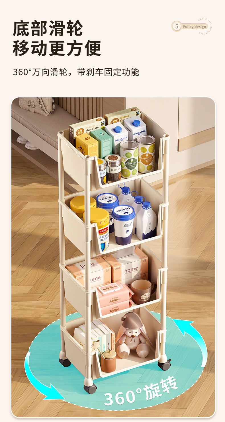 小推车置物架移动书架家用零食落地多层客厅收纳厨房果蔬收纳架子