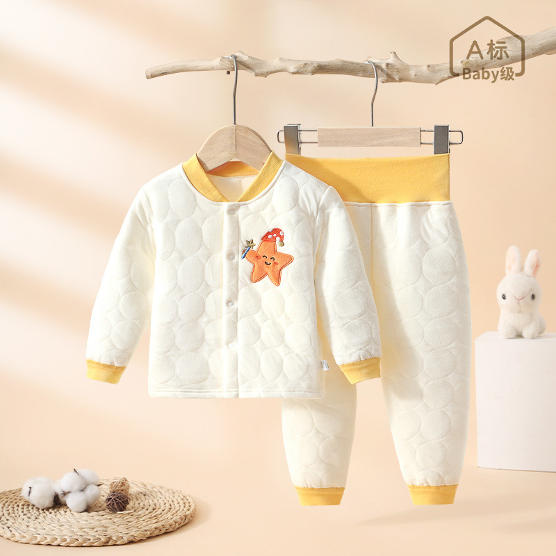 아기 속옷 세트 봄 가을면 어린이 분할 잠옷 아기 높은 허리 배꼽 보호면 따뜻한 가을 옷과 바지스토어 가기