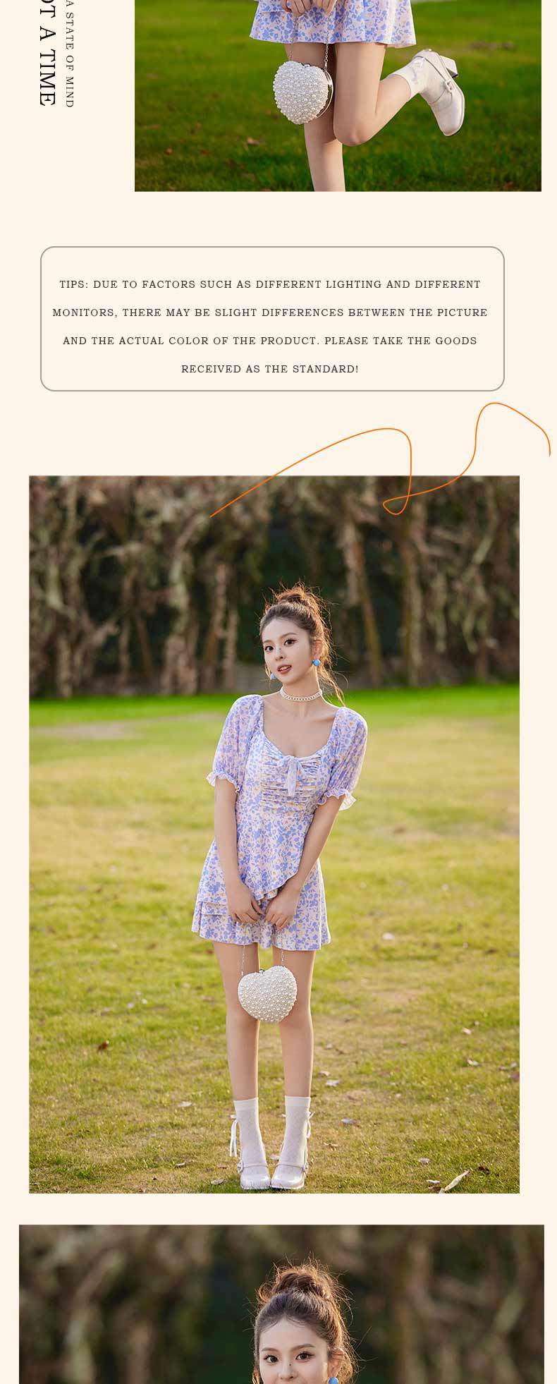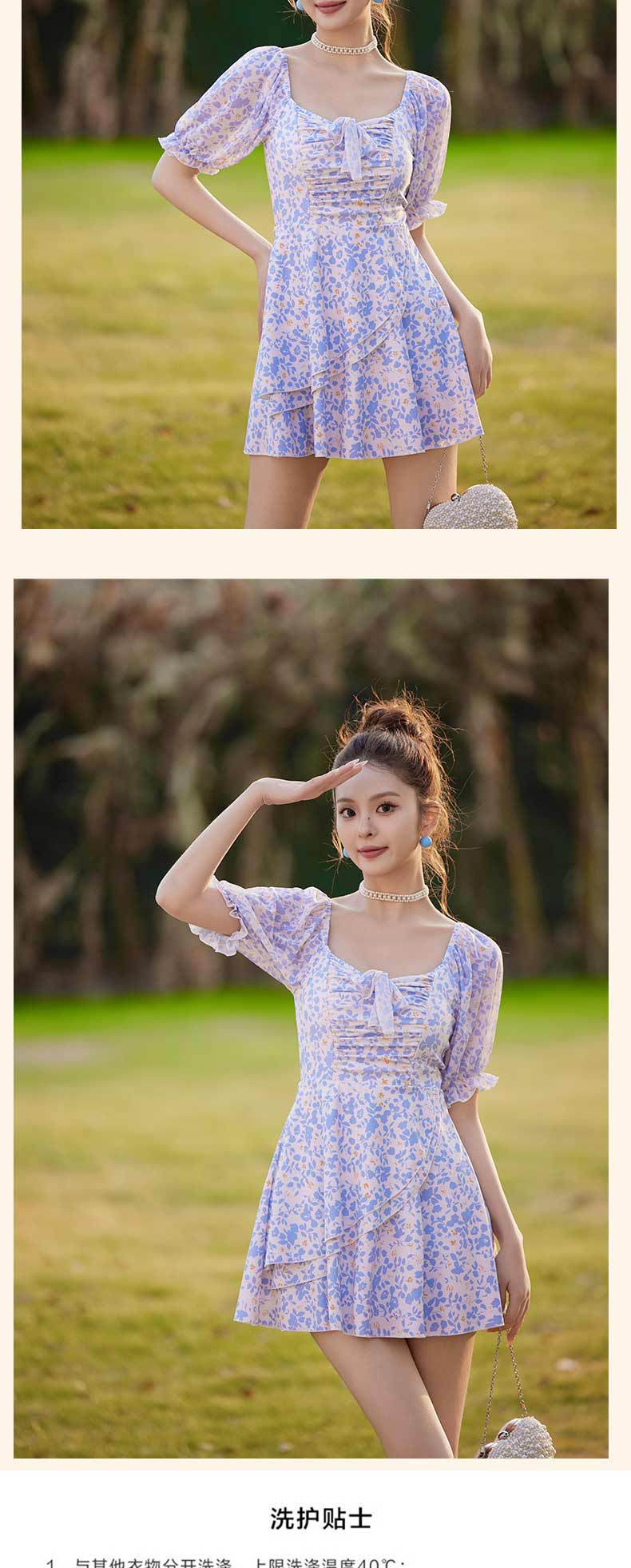 새로운 수영복 여성 보수적으로 섹시 비키니 배꼽 커버 온천 수영복 작은 꽃 퍼프 슬리브 여름 수영복스토어 가기
