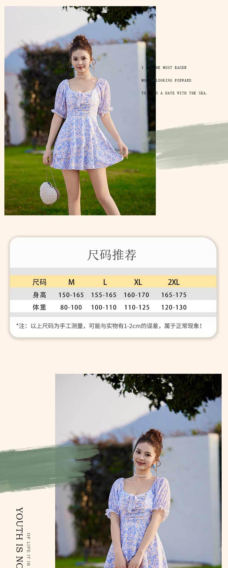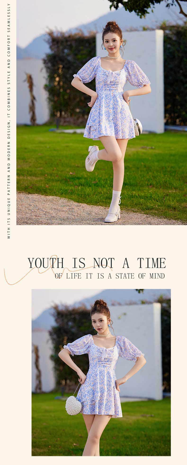 새로운 수영복 여성 보수적으로 섹시 비키니 배꼽 커버 온천 수영복 작은 꽃 퍼프 슬리브 여름 수영복