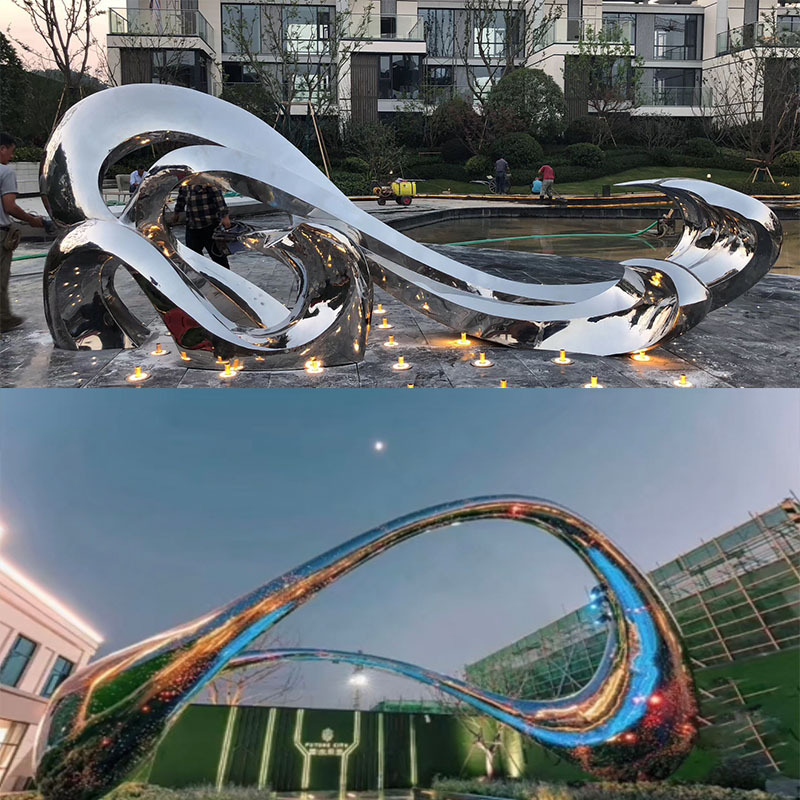 거울 스테인레스 스틸 조각 대형 도시 광장 공원 캠퍼스 야외 풍경 맞춤형 추상 특수 모양의 조각 공장스토어 가기