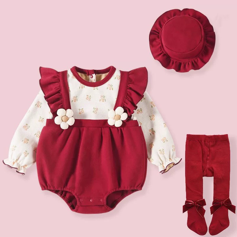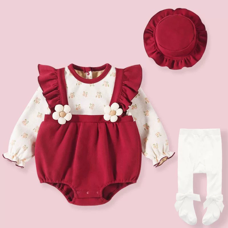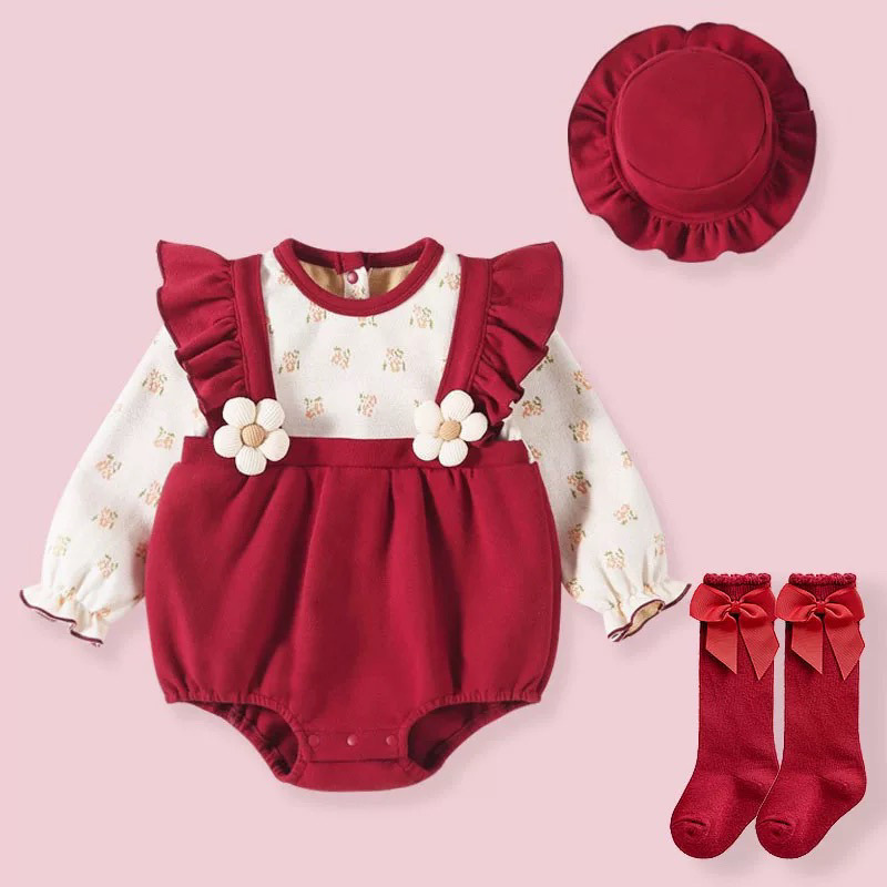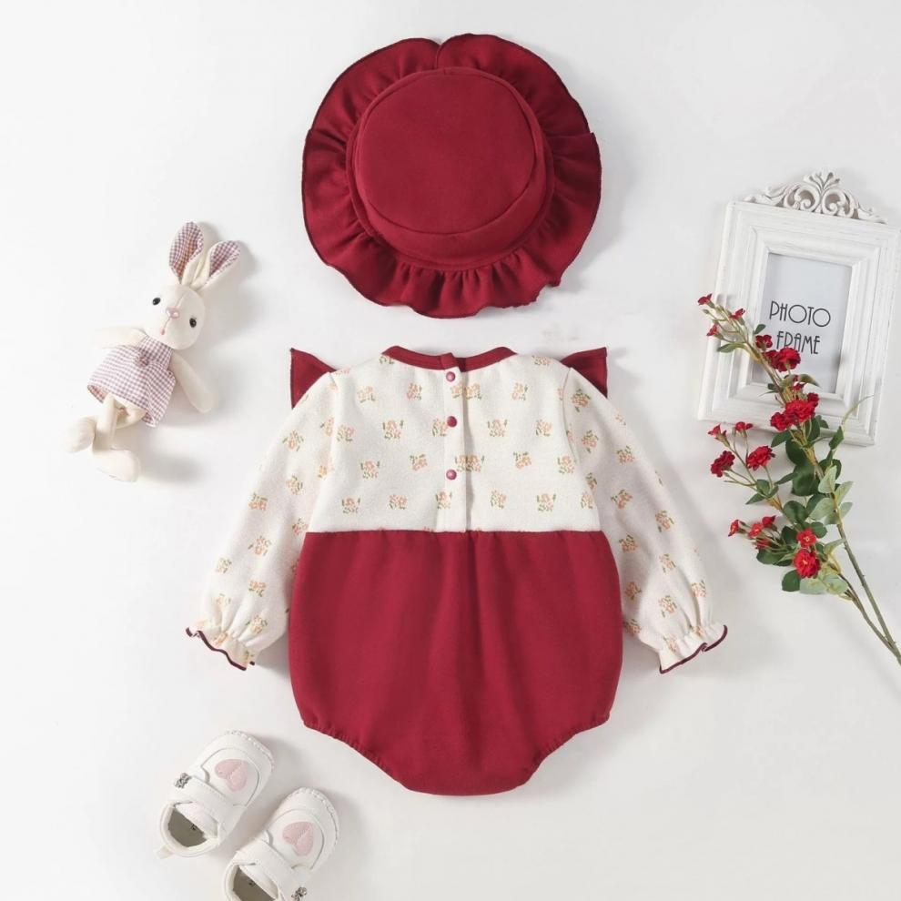 [긴 소매 디자인 따뜻하고 편안한] 아기 옷 봄과 가을 서양식 신생아 가방 방귀 옷 아기 소녀 점프 수트