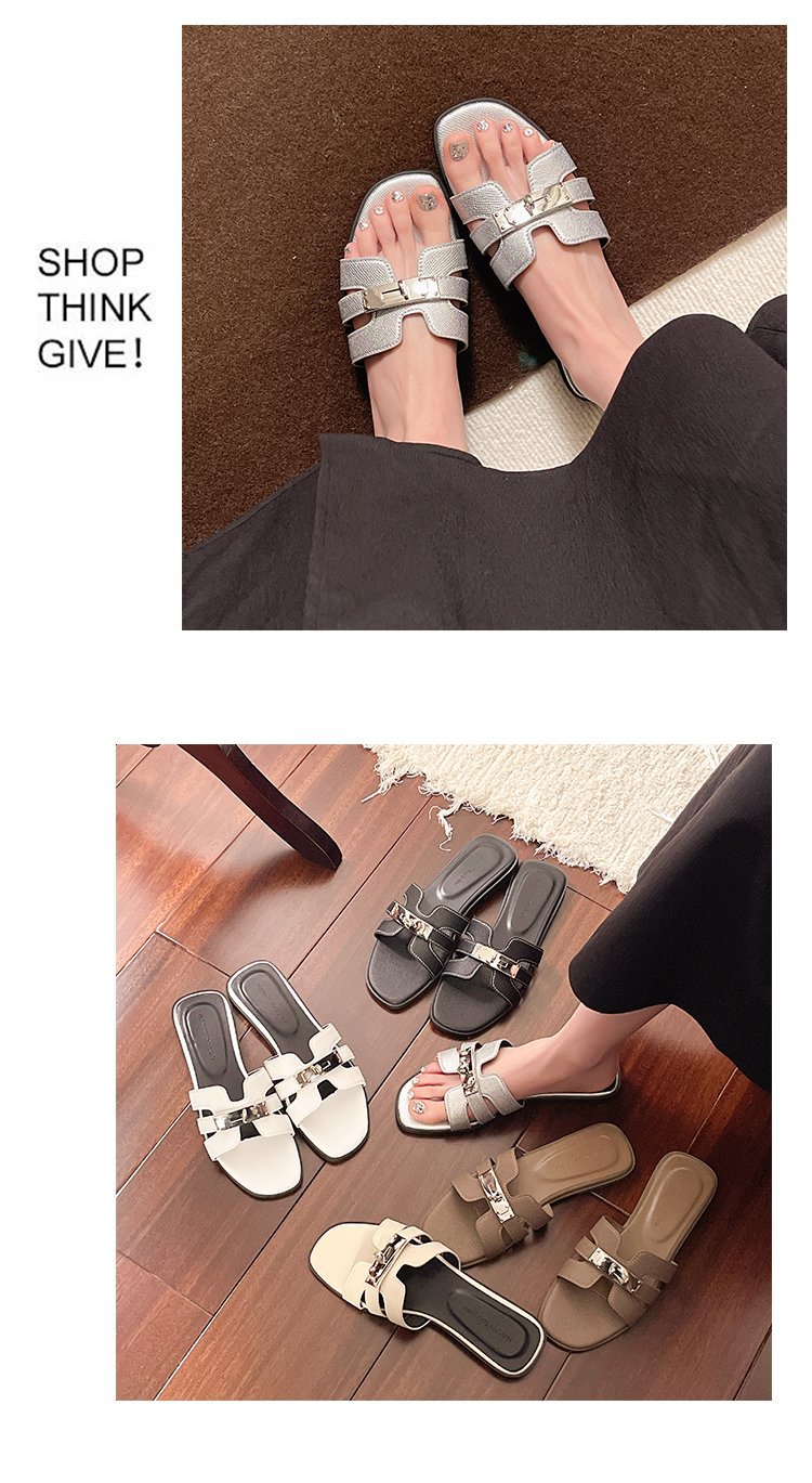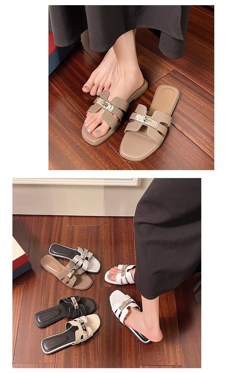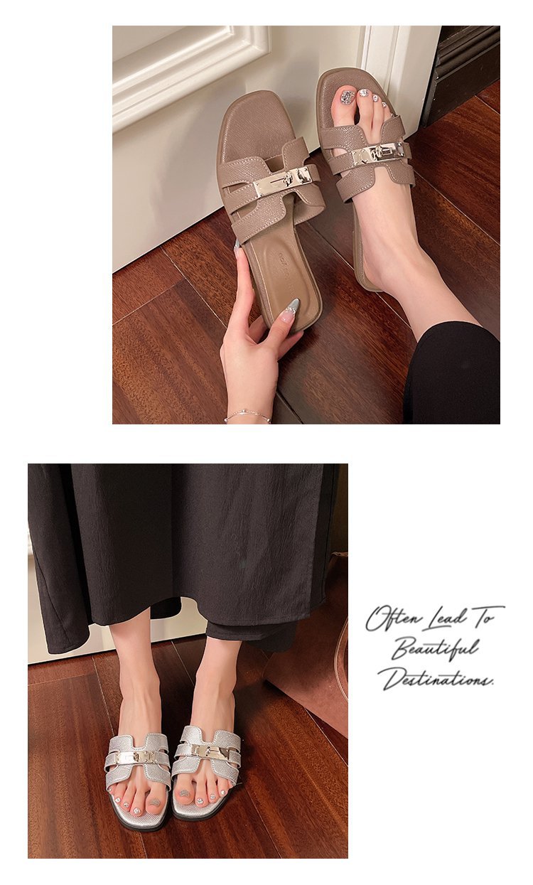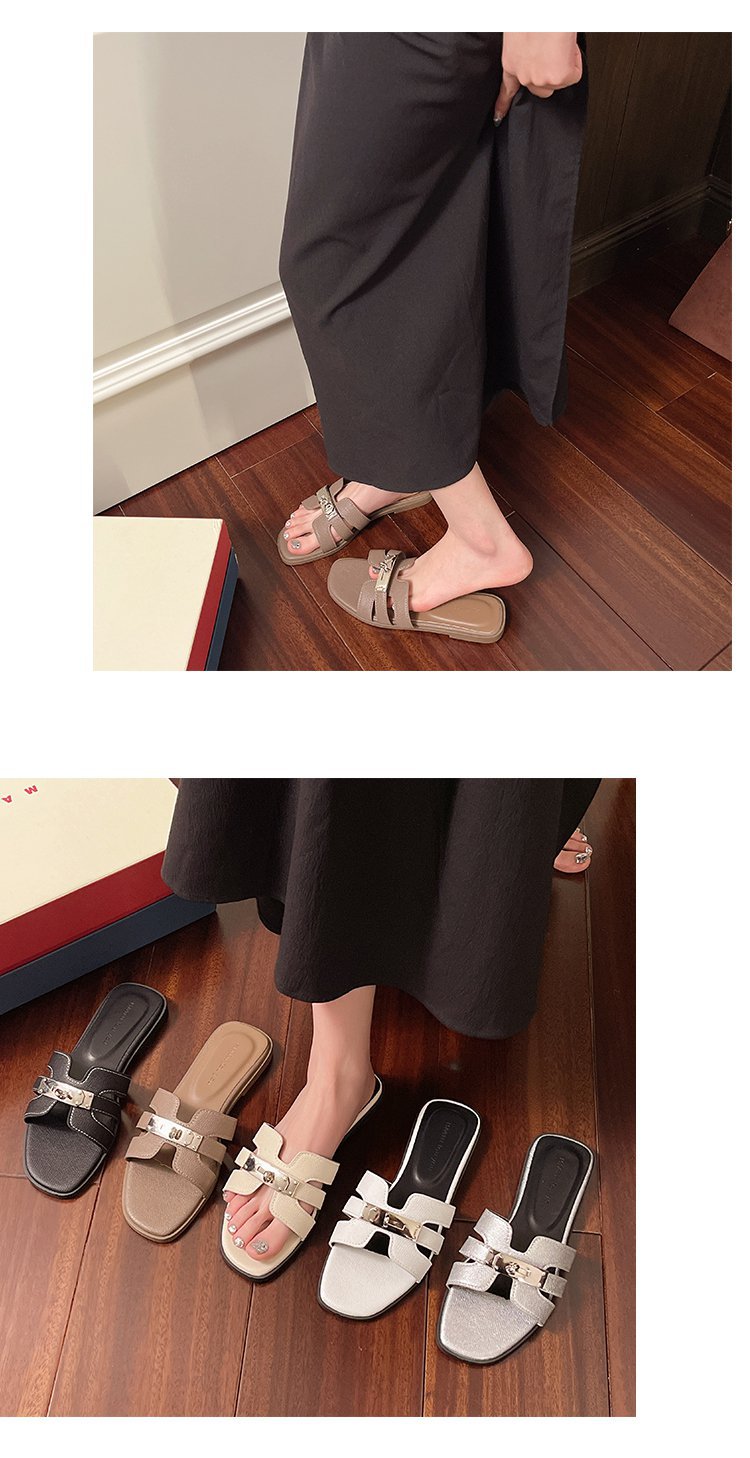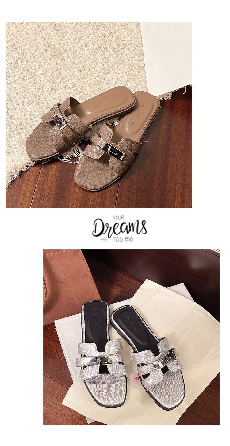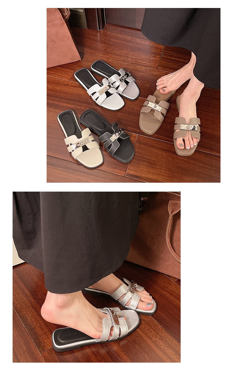 작은 금 버클 실버 샌들 여성용 여름 아우터웨어 2025 새로운 레트로 할로우 플랫 슬리퍼 캐주얼 비치 슈즈스토어 가기