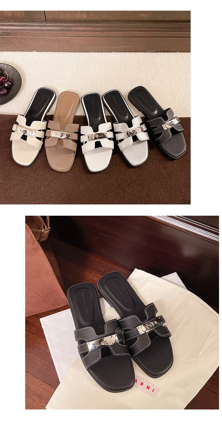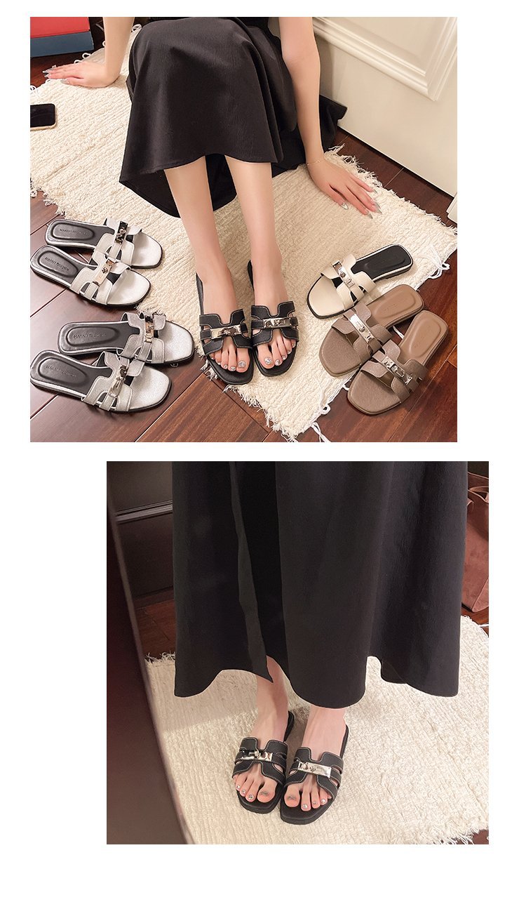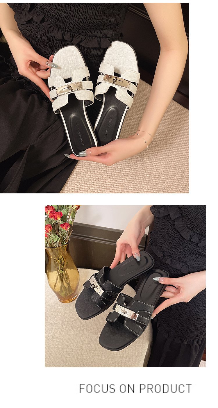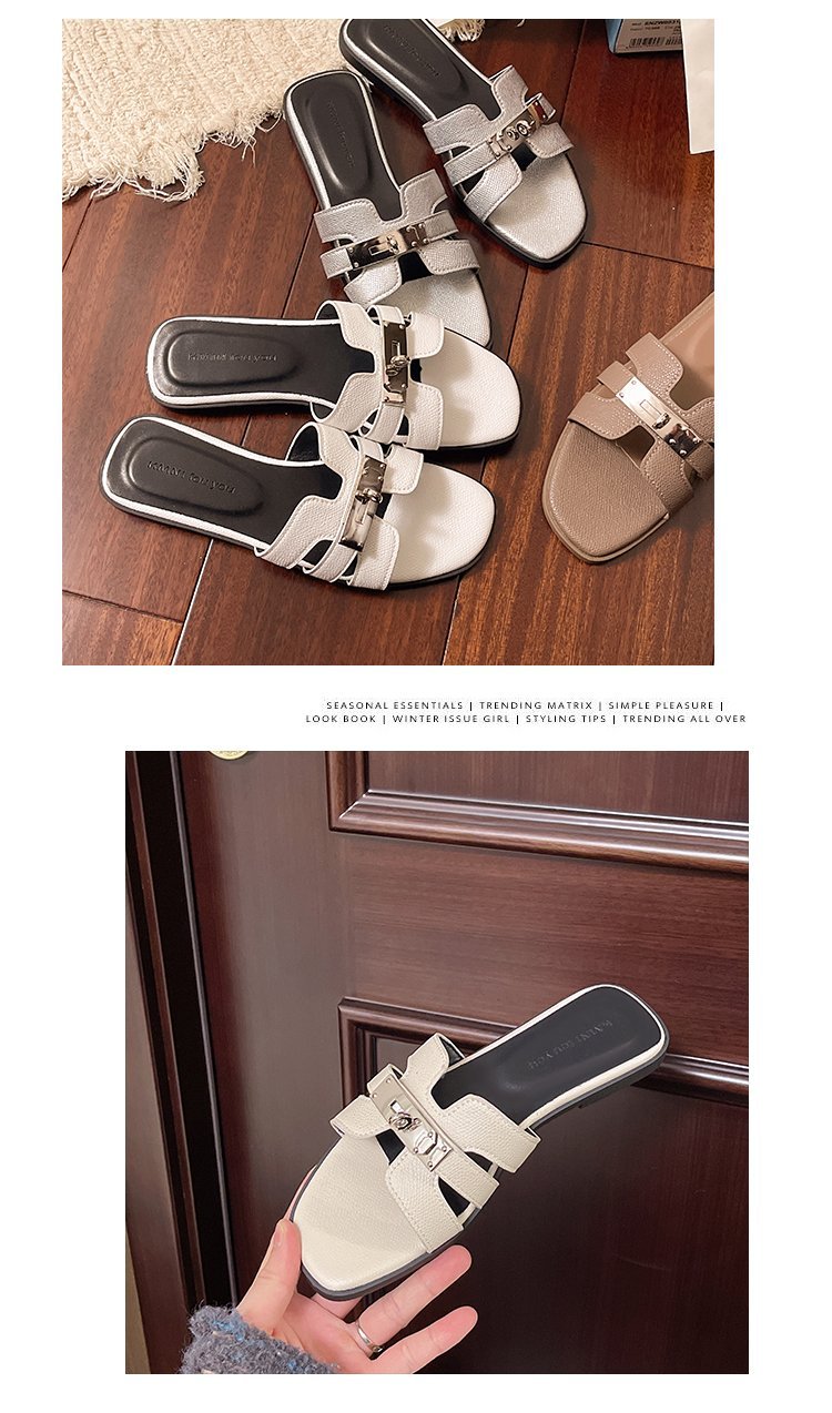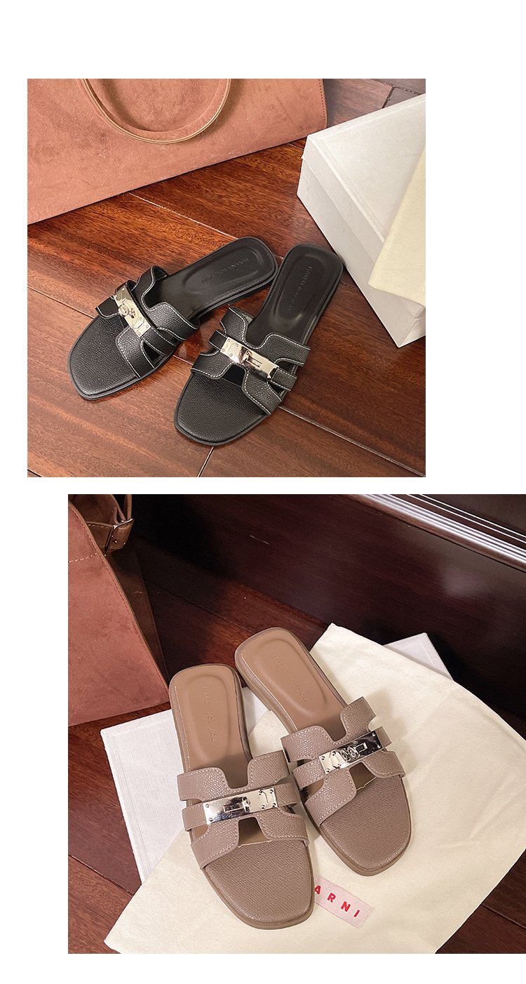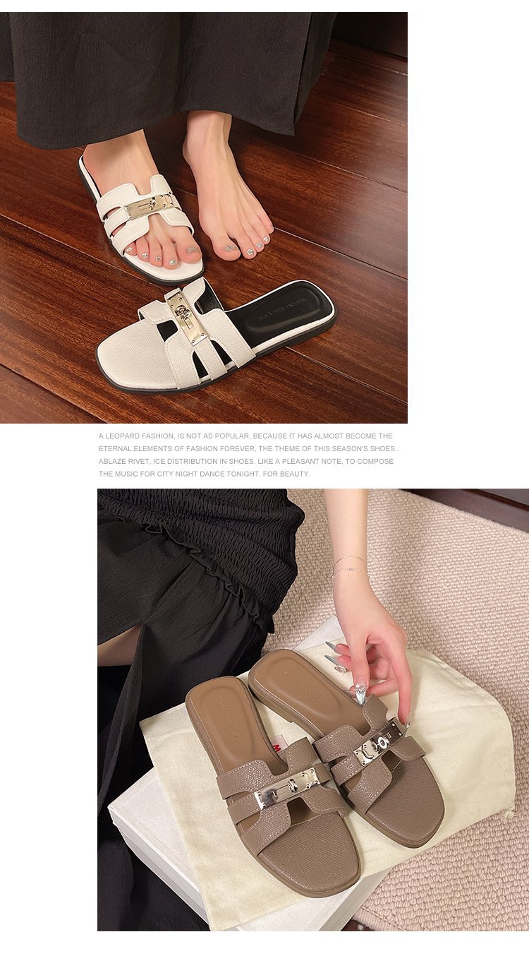 작은 금 버클 실버 샌들 여성용 여름 아우터웨어 2025 새로운 레트로 할로우 플랫 슬리퍼 캐주얼 비치 슈즈스토어 가기