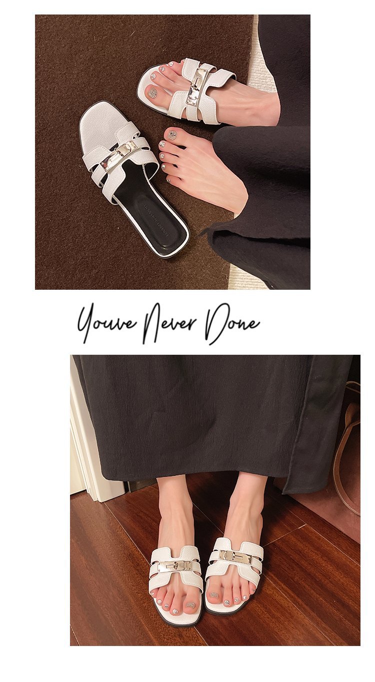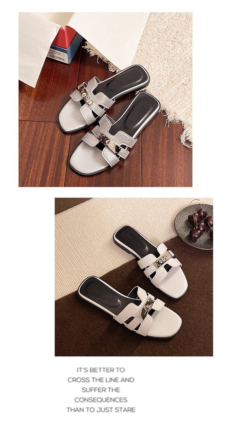작은 금 버클 실버 샌들 여성용 여름 아우터웨어 2025 새로운 레트로 할로우 플랫 슬리퍼 캐주얼 비치 슈즈