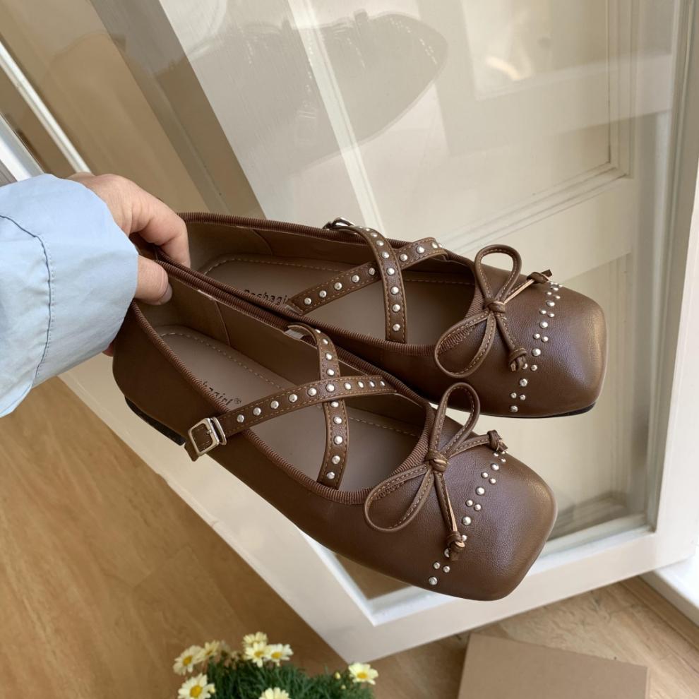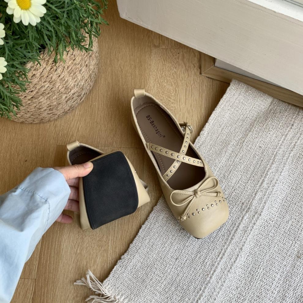 2025 봄 새로운 프랑스 스타일 메리 제인 신발 광장 발가락 크로스 활 디자인 플랫 얕은 입 싱글 신발스토어 가기