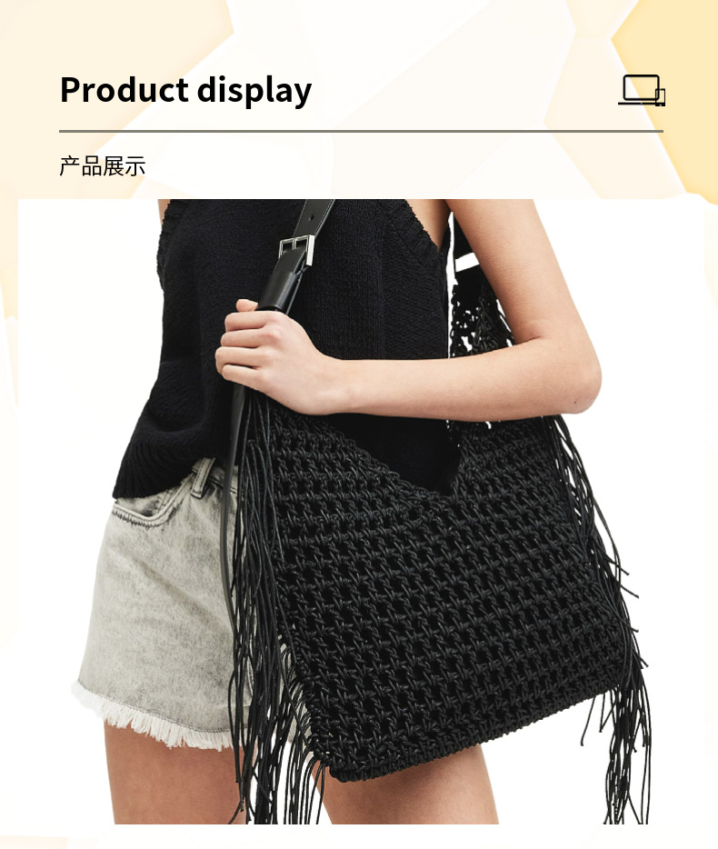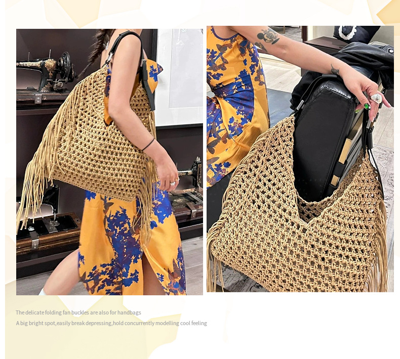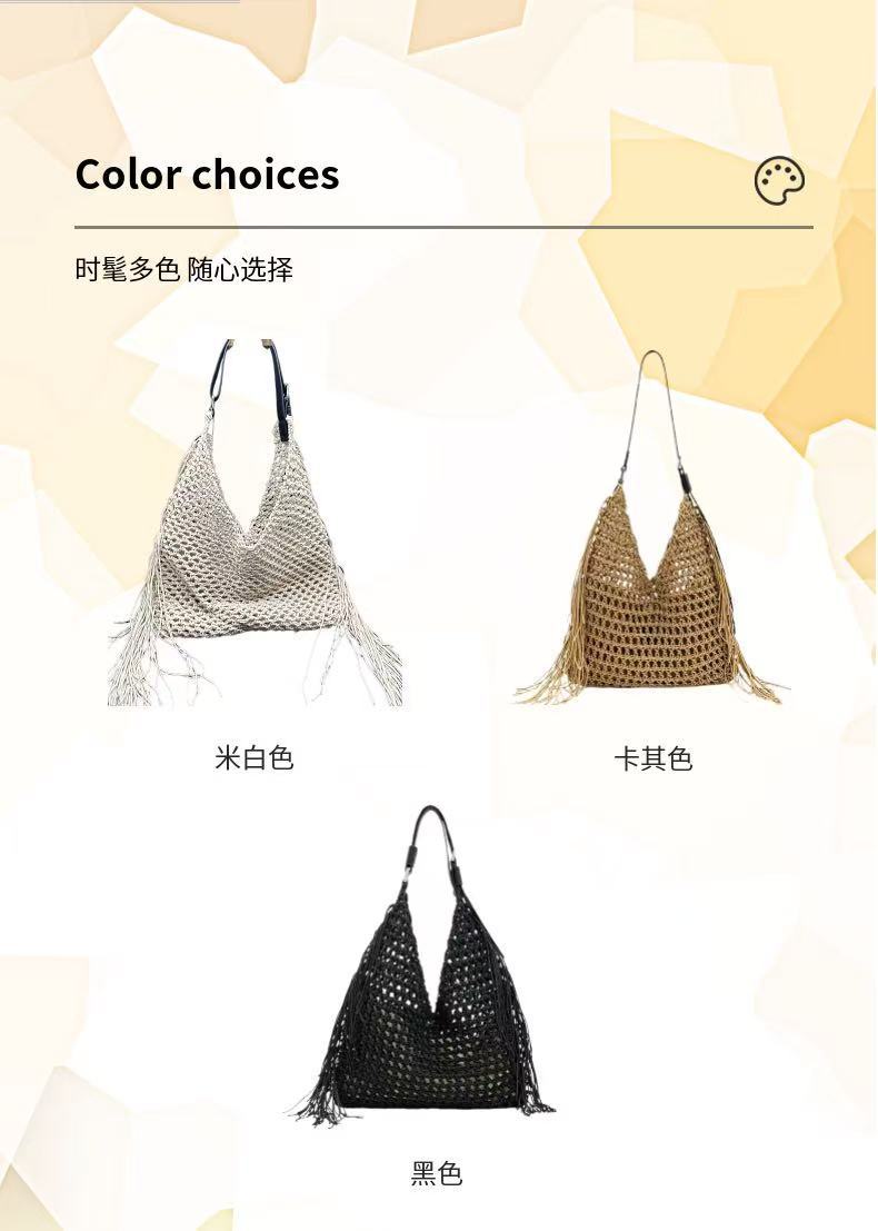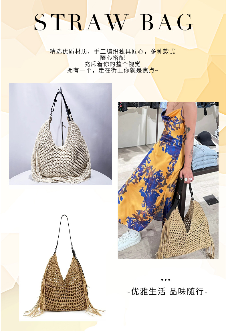 새로운 스타일의 속이 빈 면사 수공예 가방 여성용 캐주얼 숄더 밀짚 가방 토트백 대용량 해변 가방