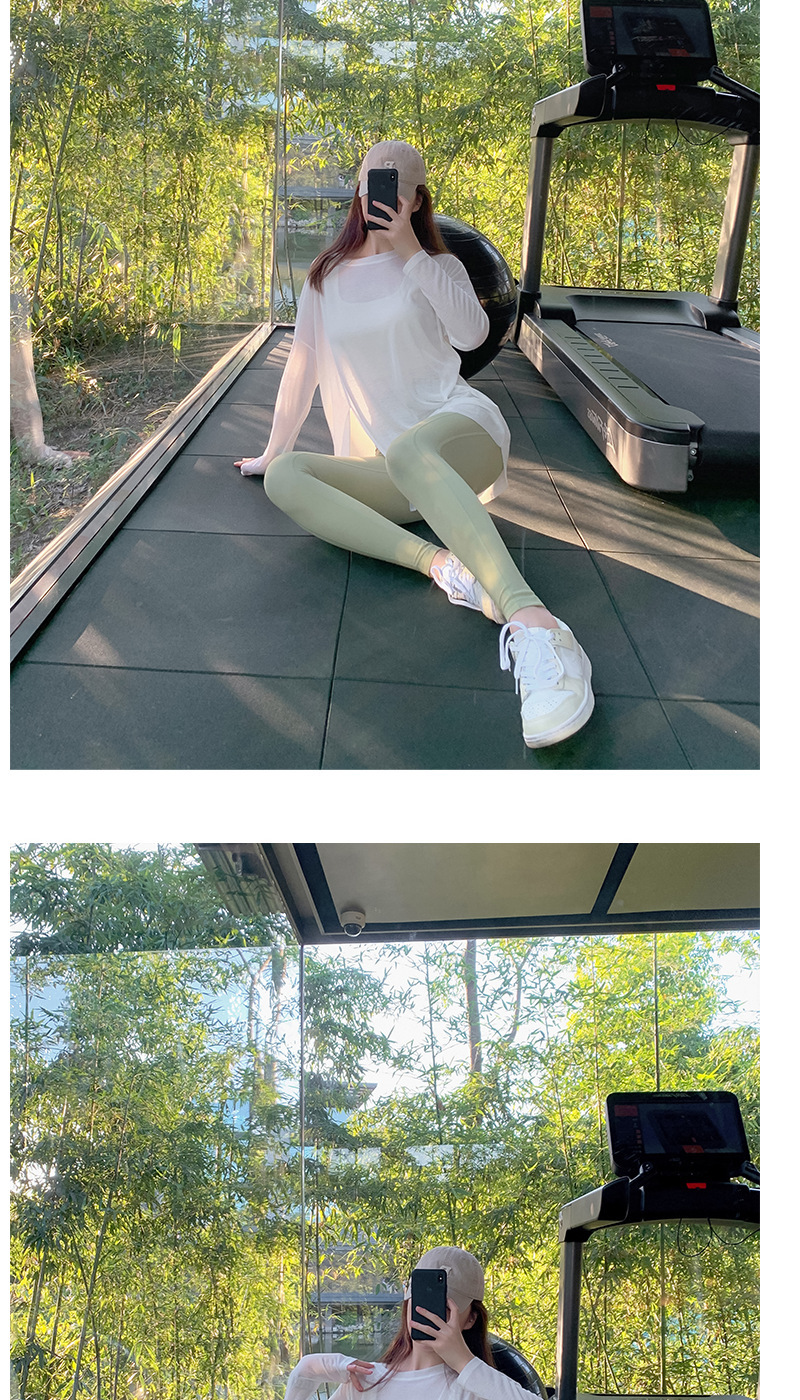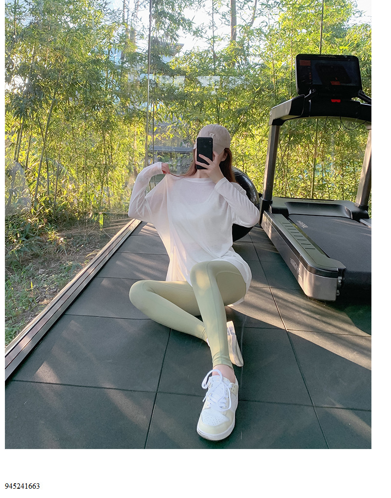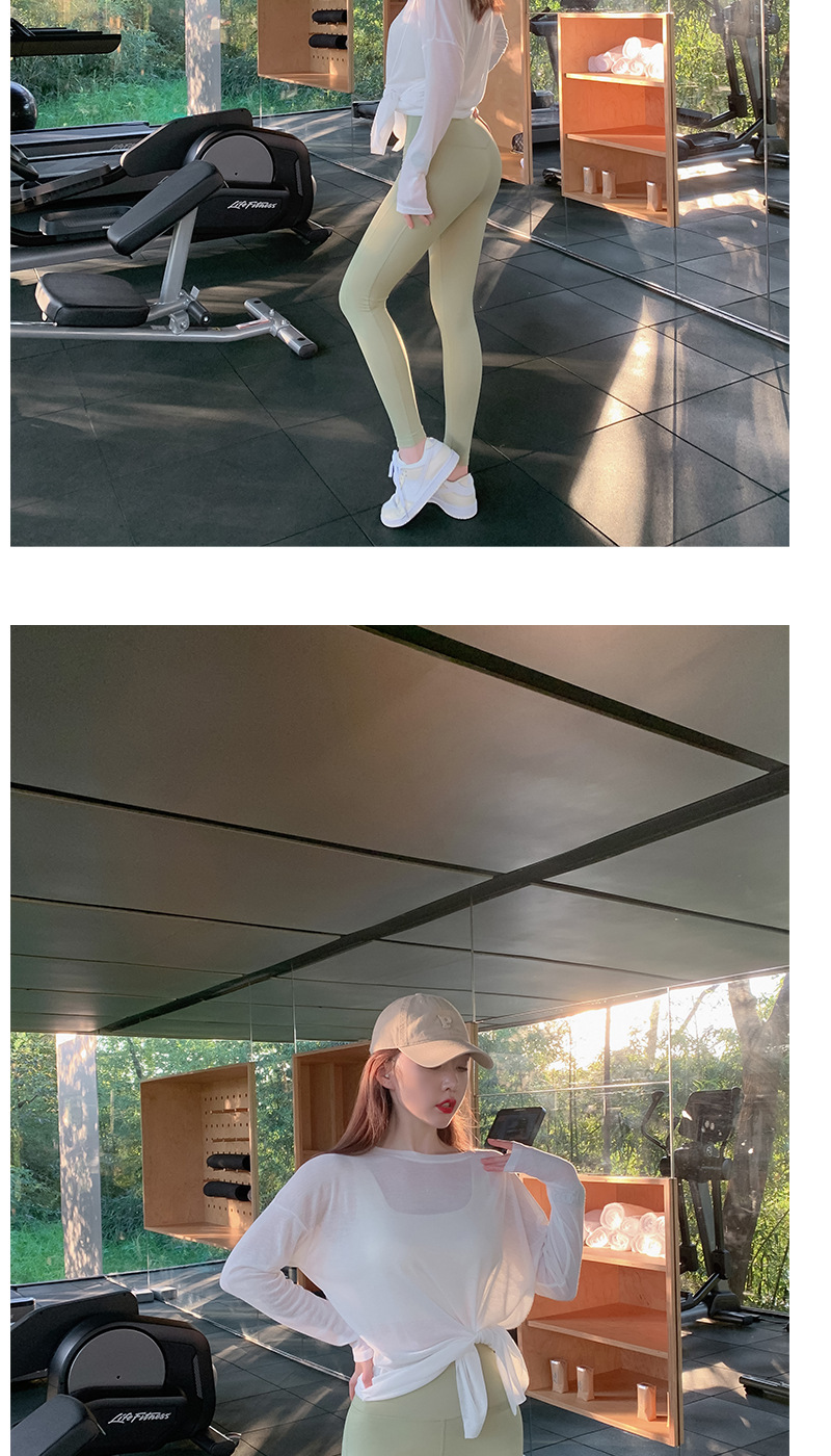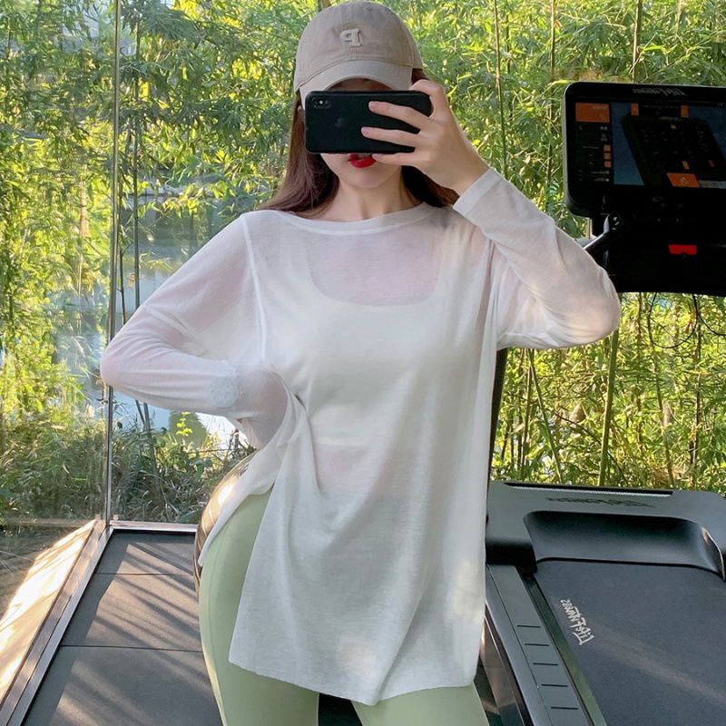 아이스 실크 선 스크린 의류 여성 의상 여름 느슨한 스포츠 긴 소매 분할 얇은 통기성 요가 셔츠 블라우스 트렌디스토어 가기