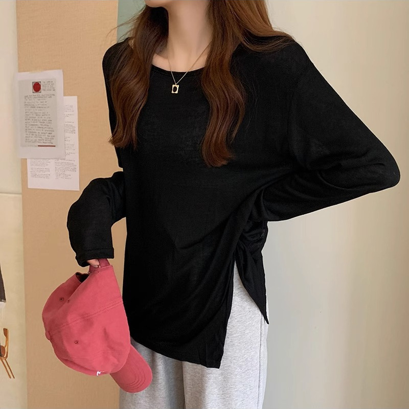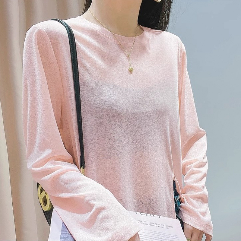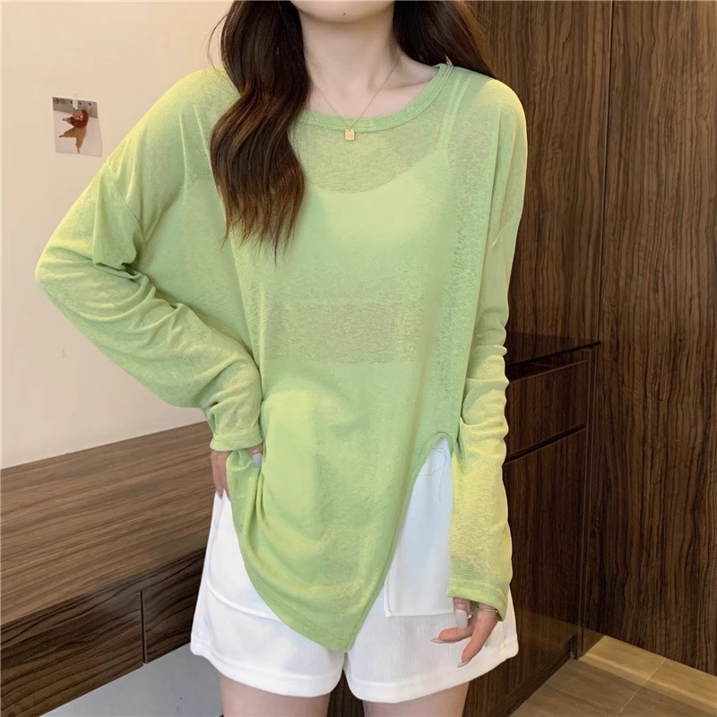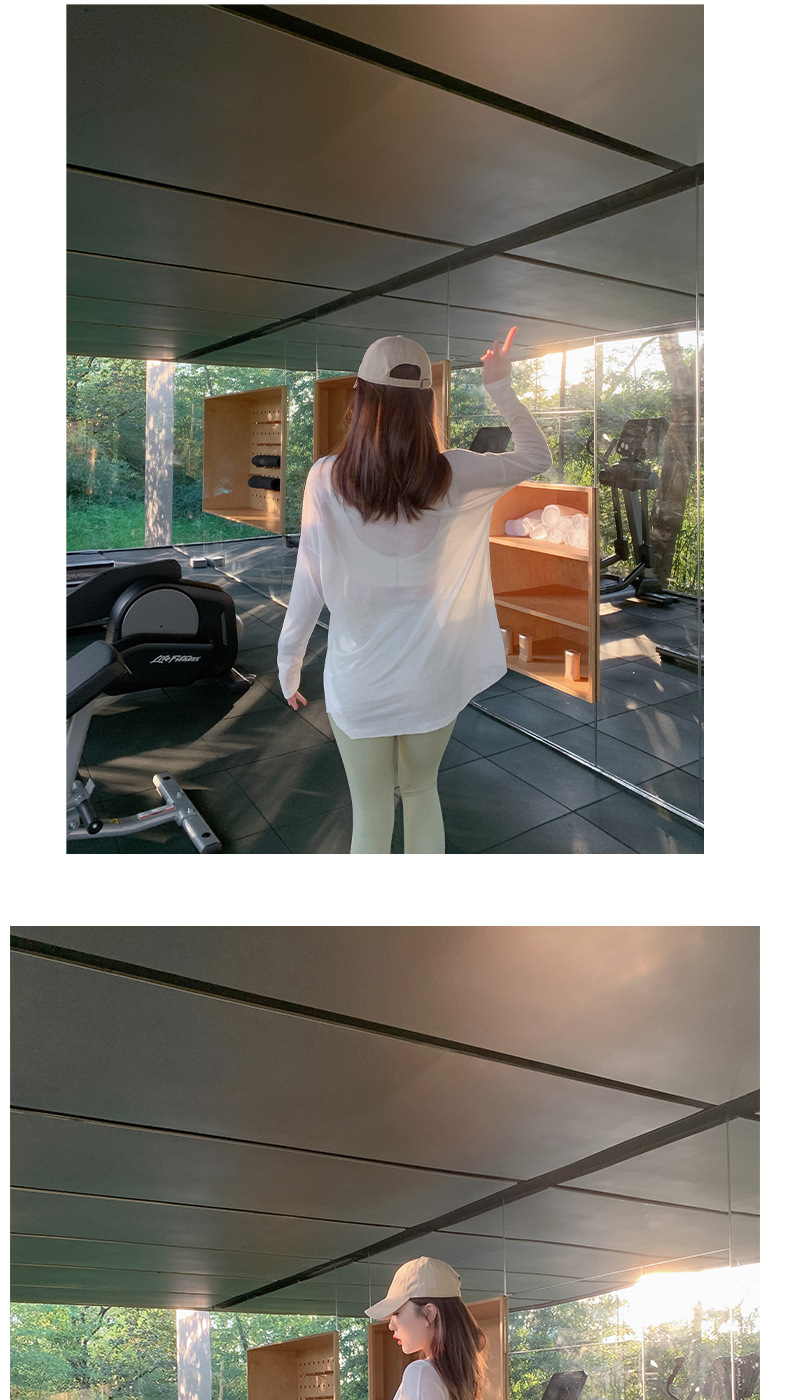 아이스 실크 선 스크린 의류 여성 의상 여름 느슨한 스포츠 긴 소매 분할 얇은 통기성 요가 셔츠 블라우스 트렌디스토어 가기