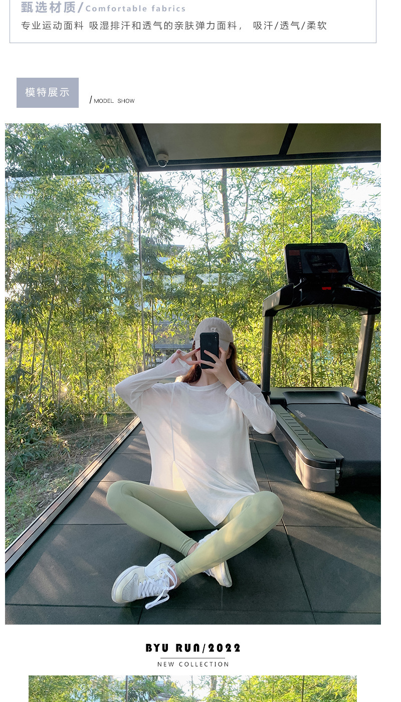 아이스 실크 선 스크린 의류 여성 의상 여름 느슨한 스포츠 긴 소매 분할 얇은 통기성 요가 셔츠 블라우스 트렌디