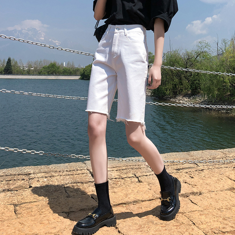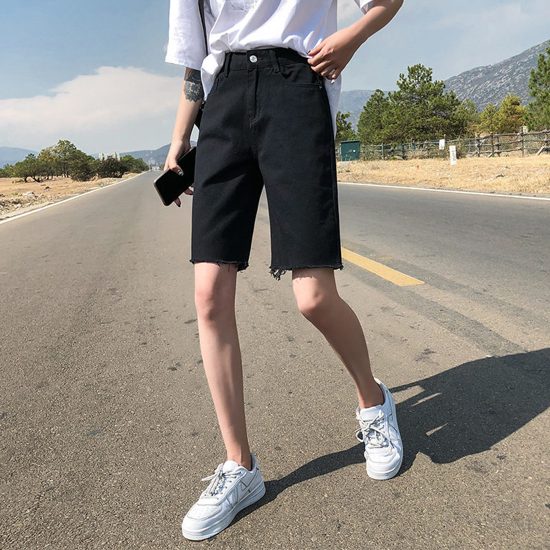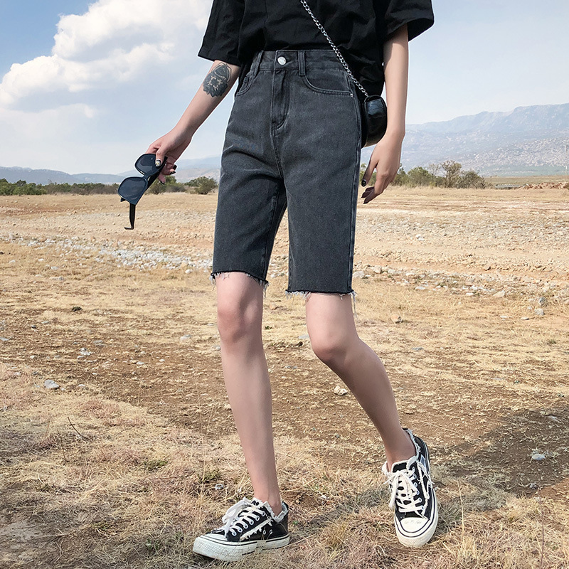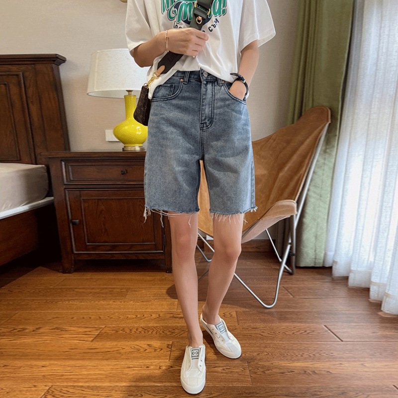 느슨한 모피 컷 데님 반바지 여성 여름 2024 얇은 하이 웨이스트 슬리밍 스파이스 걸스 넓은 다리 중간 길이의 트렌디 인 바지스토어 가기