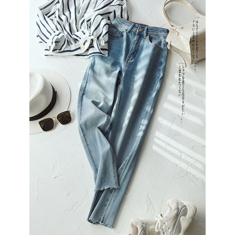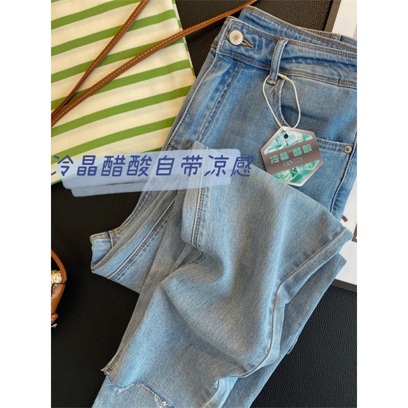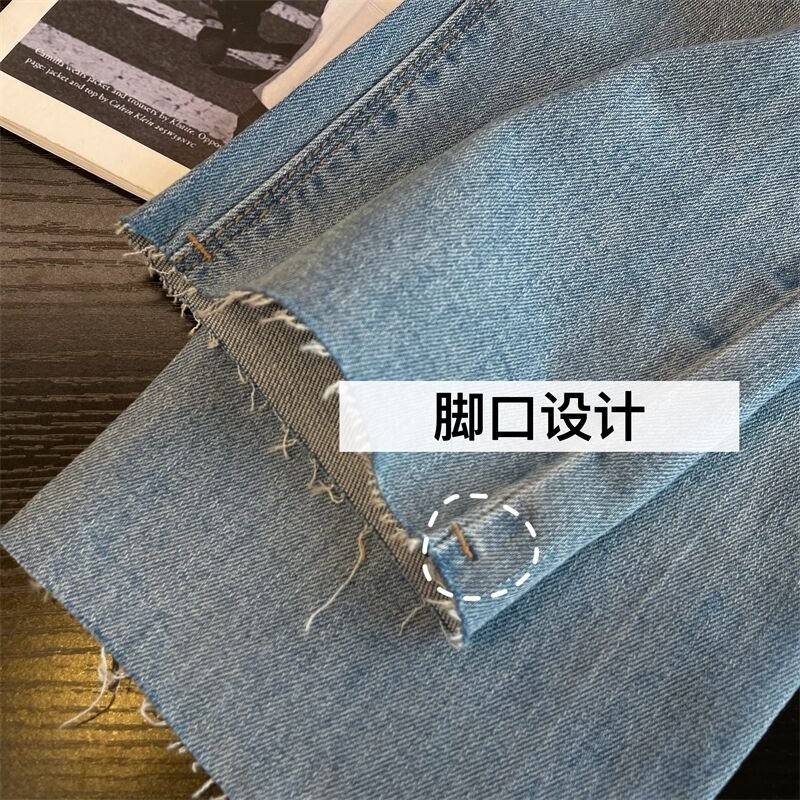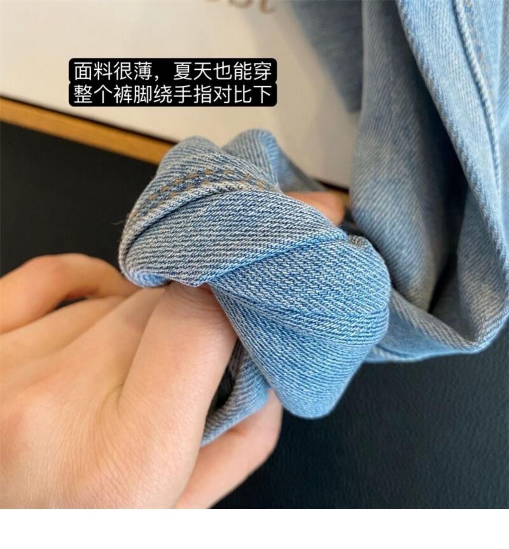 나노 봄과 가을 스트레이트 청바지 여성의 2024 여름 새로운 높은 허리 슬리밍 라이트 컬러 파이프 바지스토어 가기