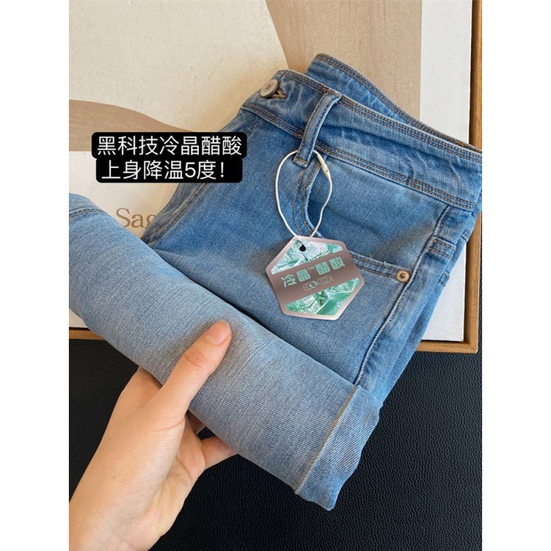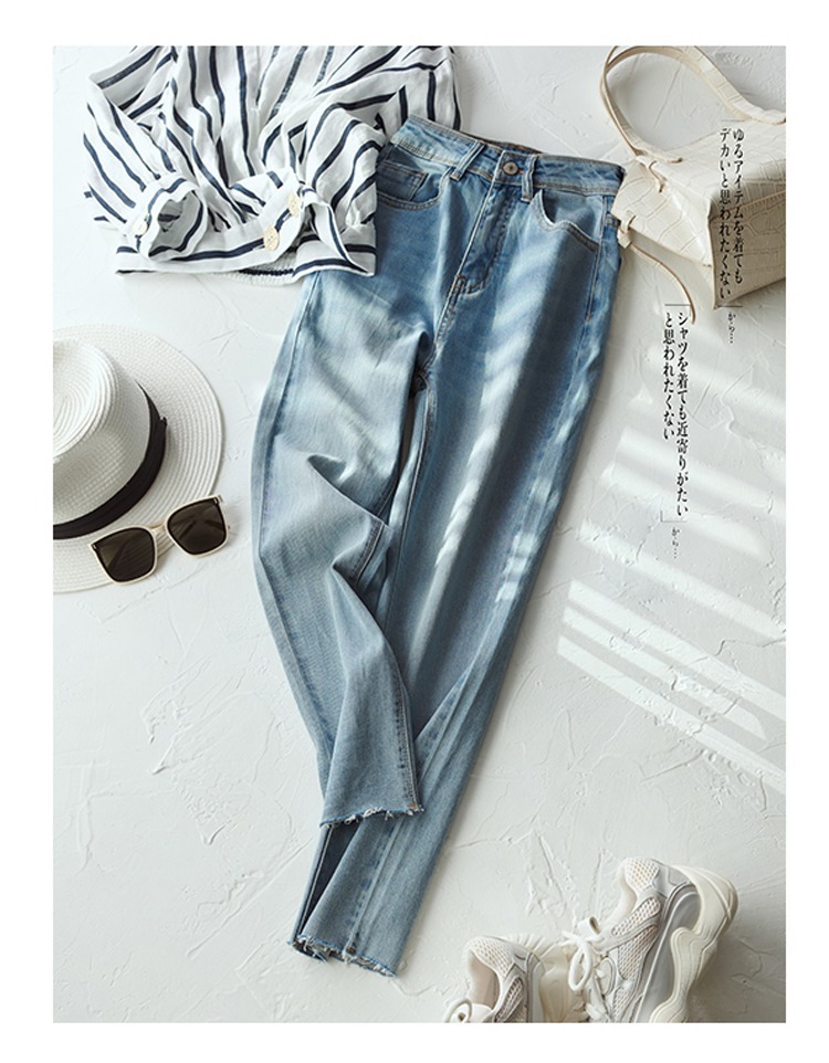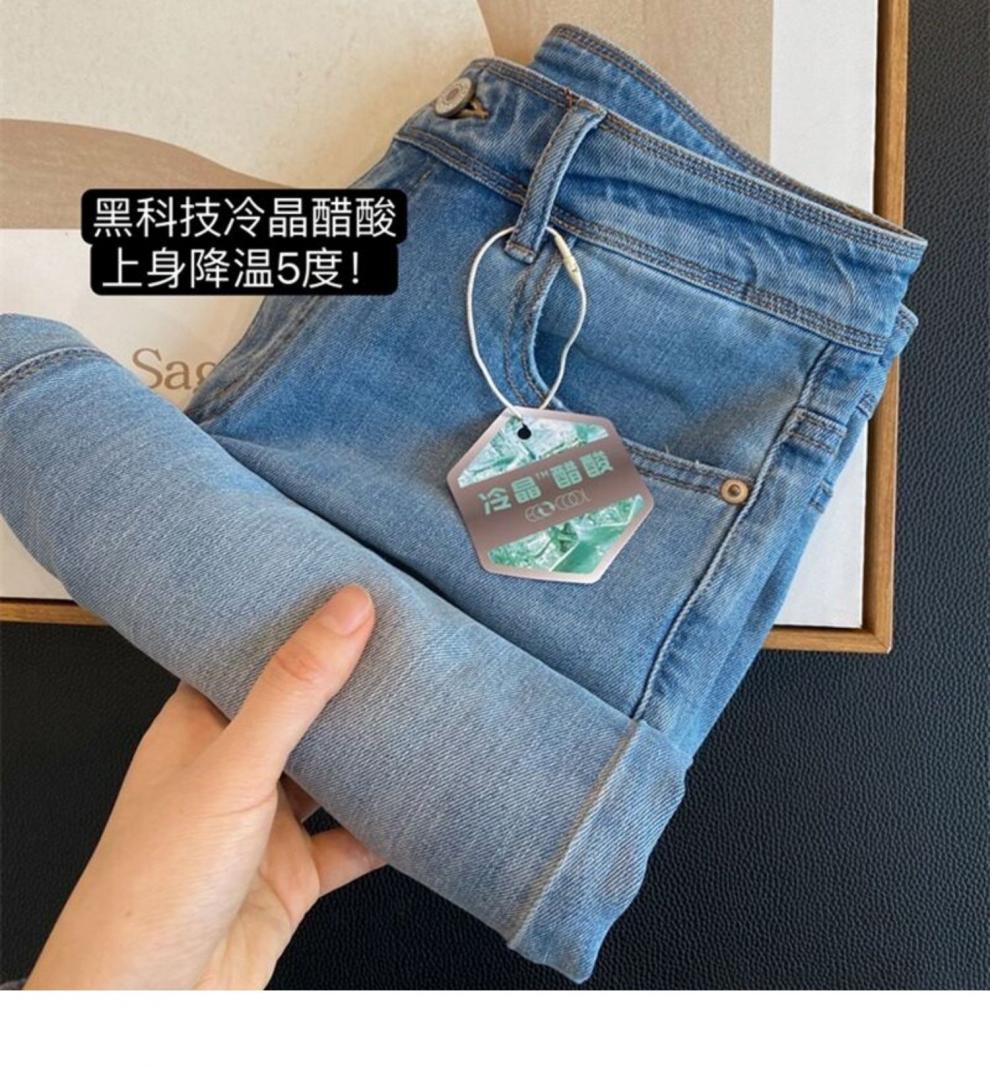 • 가장자리가 없는 하늘색 바지(여름용 얇은 스타일)
