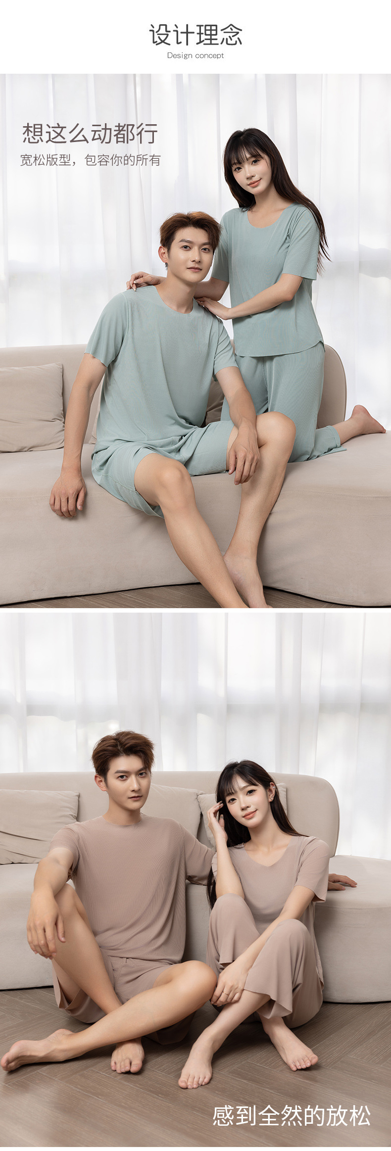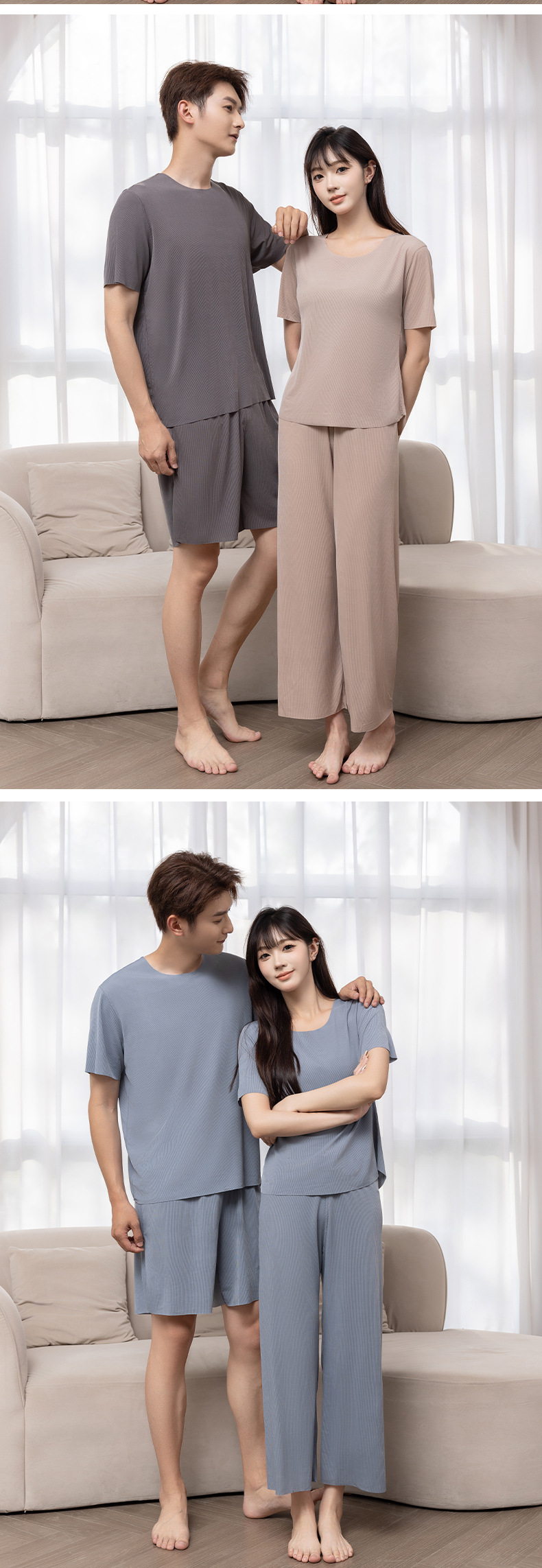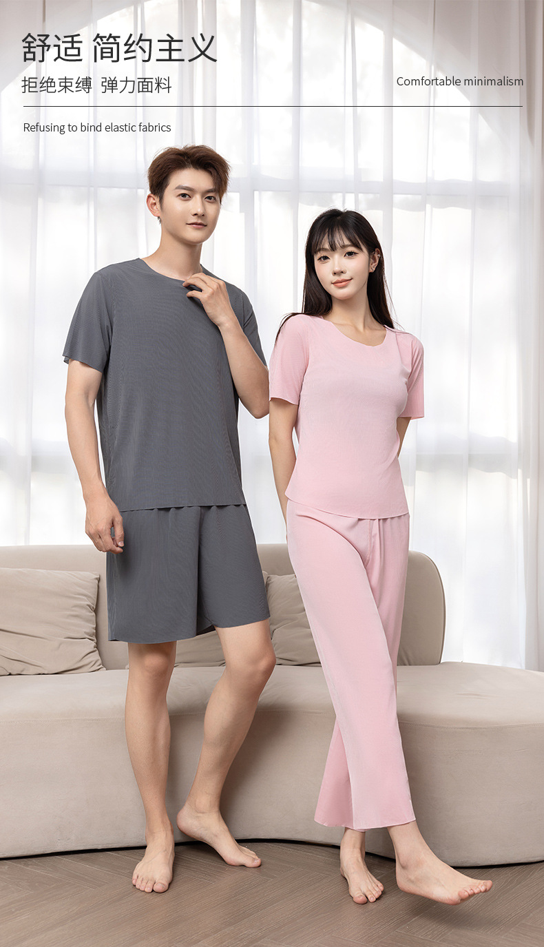 커플의 멋진 잠옷 여름 아이스 실크 스레드 얇은 홈 바지 외부 남성 반팔 홈 의류 세트스토어 가기