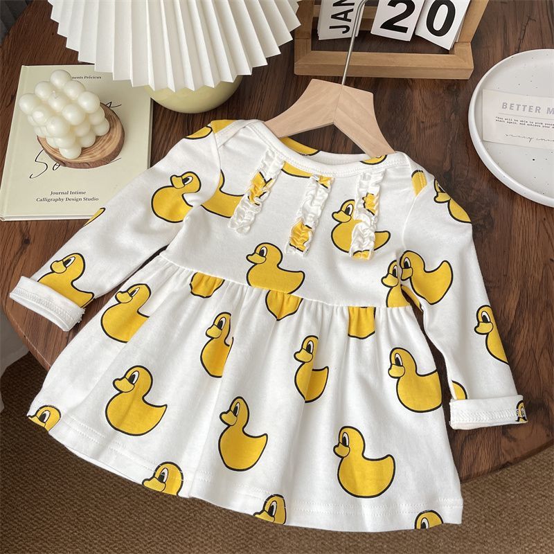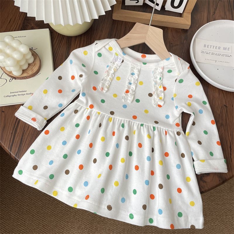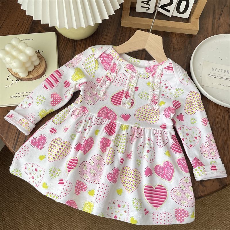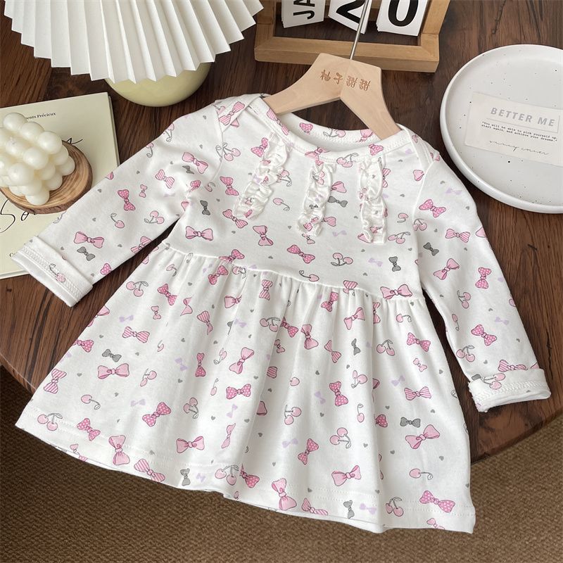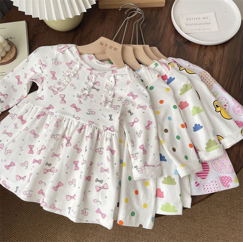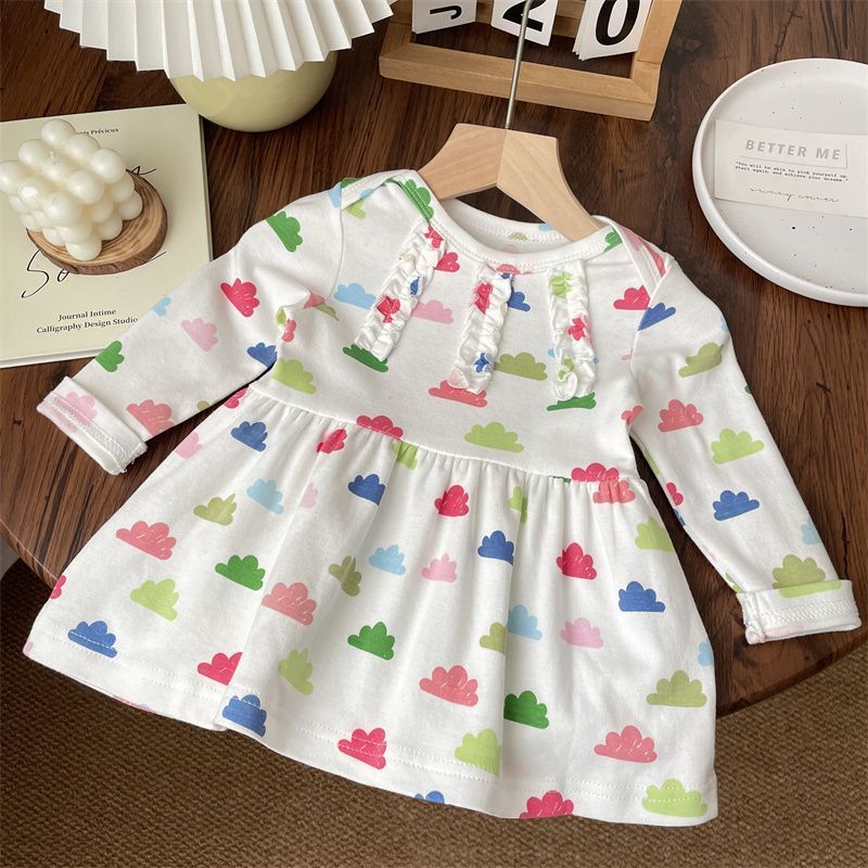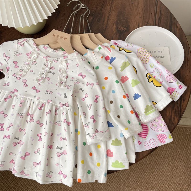 2025 귀여운 아기 원피스 봄과 가을 면화 0-6 개월-1-2-3 세 소녀 아기 긴팔 치마 어린이스토어 가기